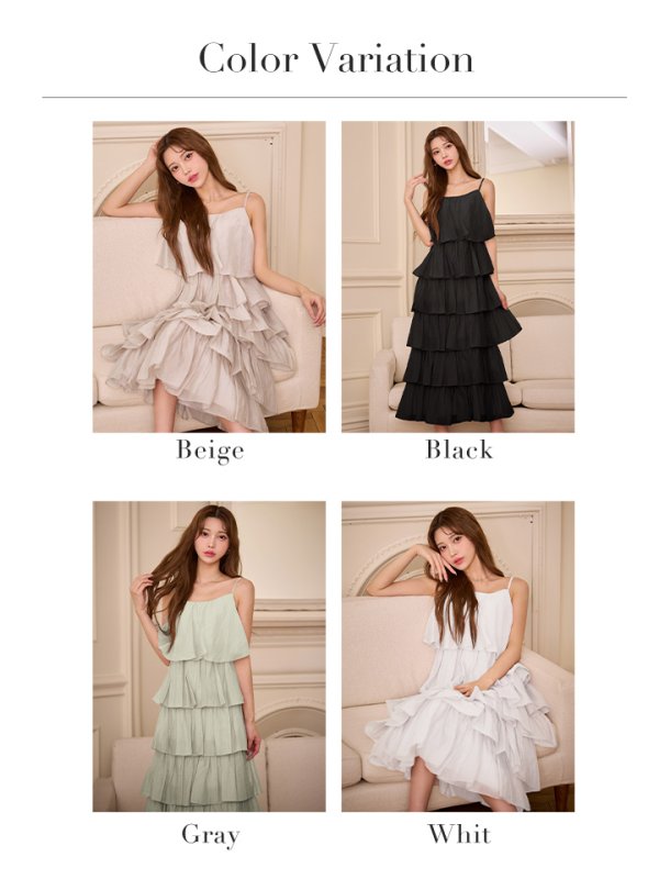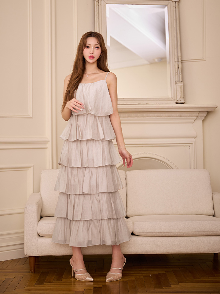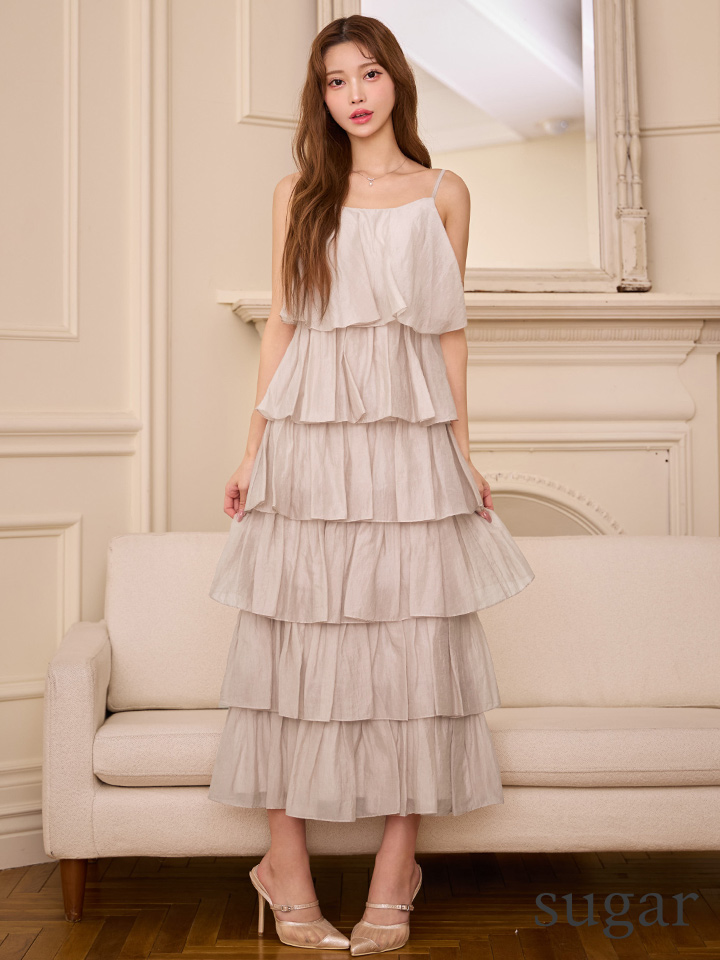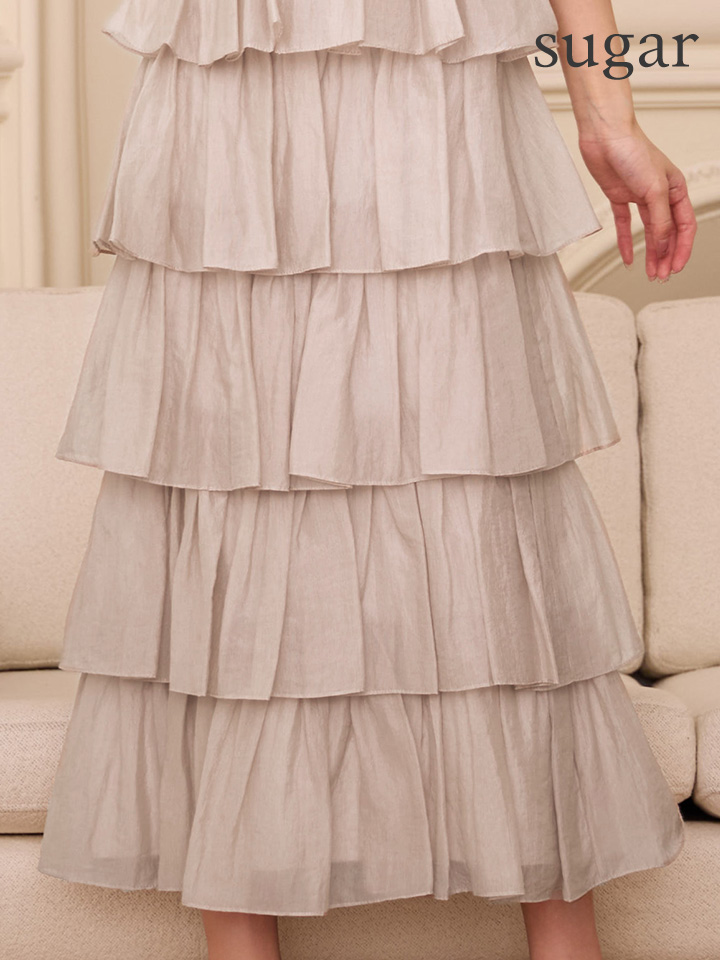 繊細なティアードデザインが目を惹くロングドレス。