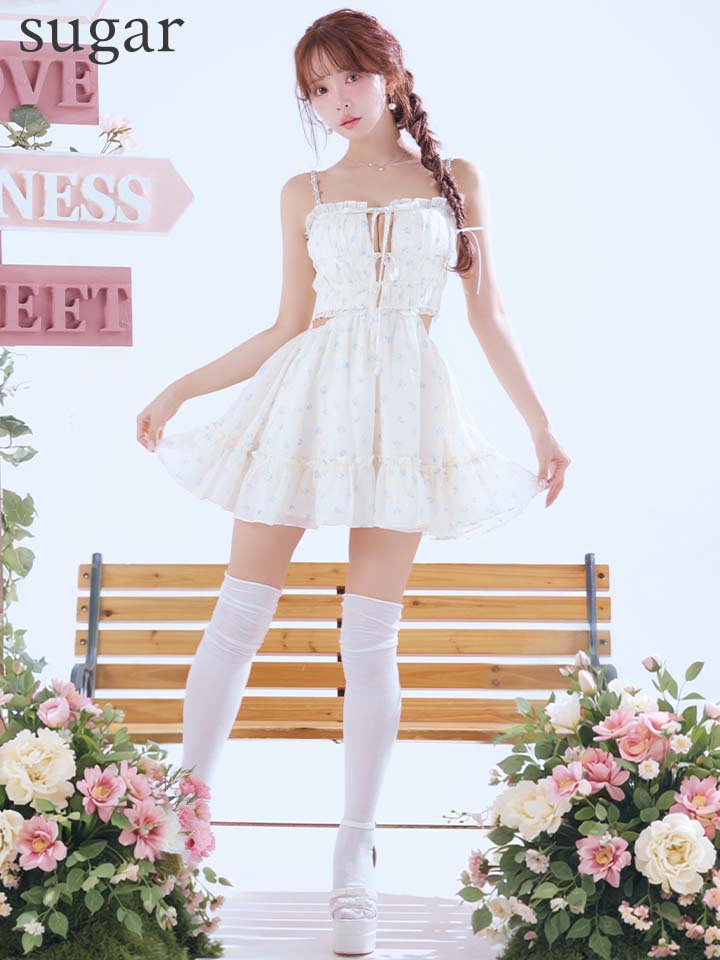 #キャバクラ #キャバ嬢 #キャバクラドレス #花柄 #ミニドレス #シフォン #リボン #フレア