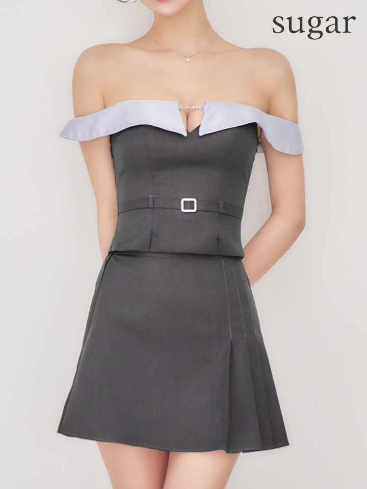 - > 【予約商品/2月中旬-2月下旬発送予定】XSサイズあり【ANGEL R/エンジェルアール】オフショル/ バストチェーン/ ベルトデザイン/ プリーツ/ バイカラー/ セパレート/ 2way/ フレア/ マイクロミニドレス/ キャバドレス[OF2]