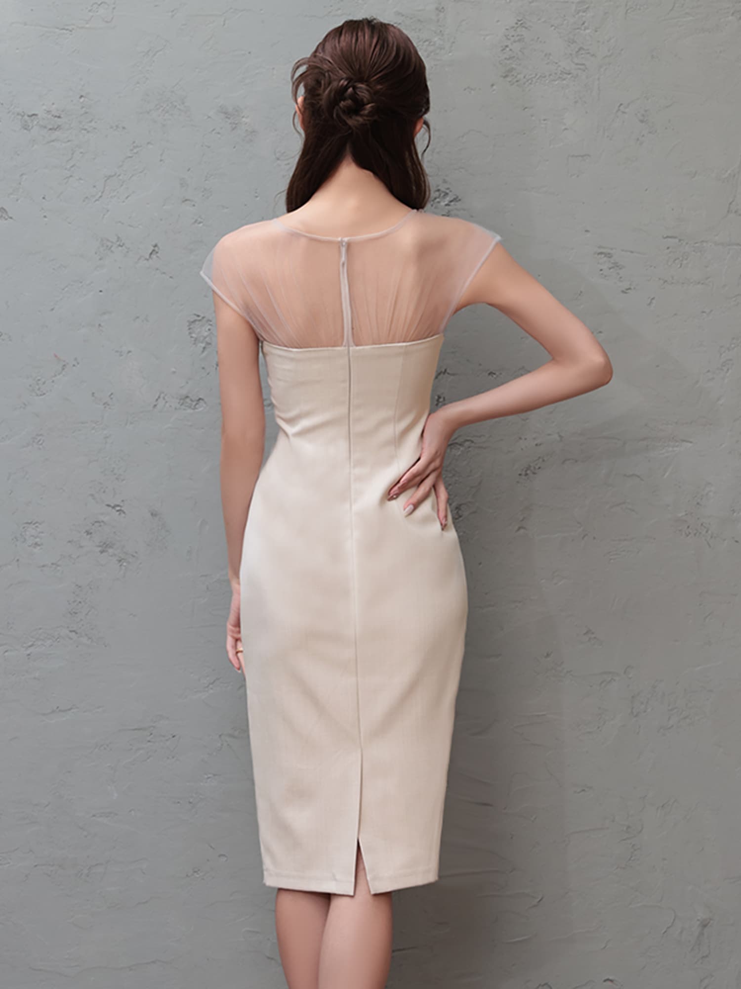 XSサイズあり【Veautt/ヴュート】【OF05】シアーショルダー/ ビジュー/ タイト/ ミディアムドレス/ キャバドレス [VT082605-BE-2602]