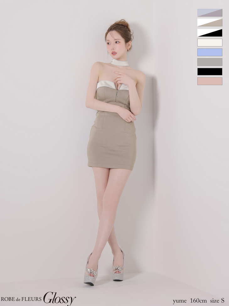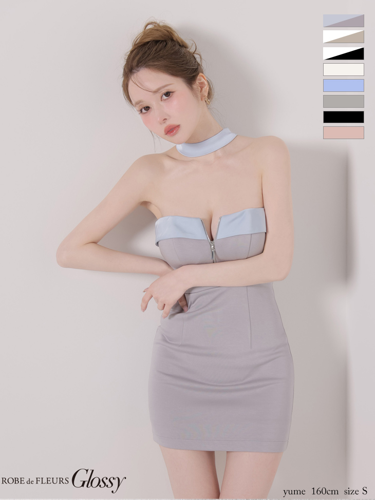 XSサイズあり【Glossy/グロッシー】2way/ チョーカー風/ バストジップ/ タイト/ ミニドレス/ キャバドレス[OF08]【一部予約商品/2月上旬発送予定】 [GL4108-GYxBL-S260204]