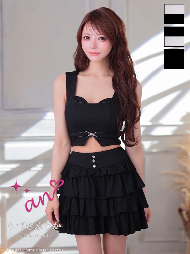 - > XSサイズあり【an /アン】 セットアップ/ バイカラー/ ビジューボタン/ ノースリーブ/ ストレッチ/ ベルト/ フリル/ ティアード/ フレア/ ミニドレス/ キャバドレス[OF05]