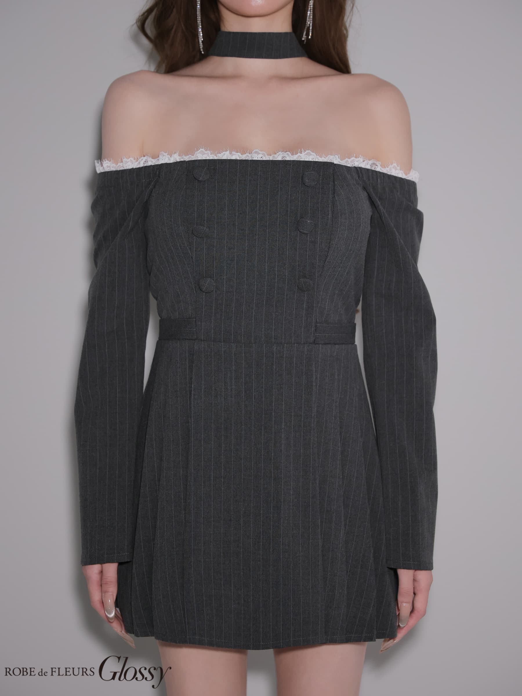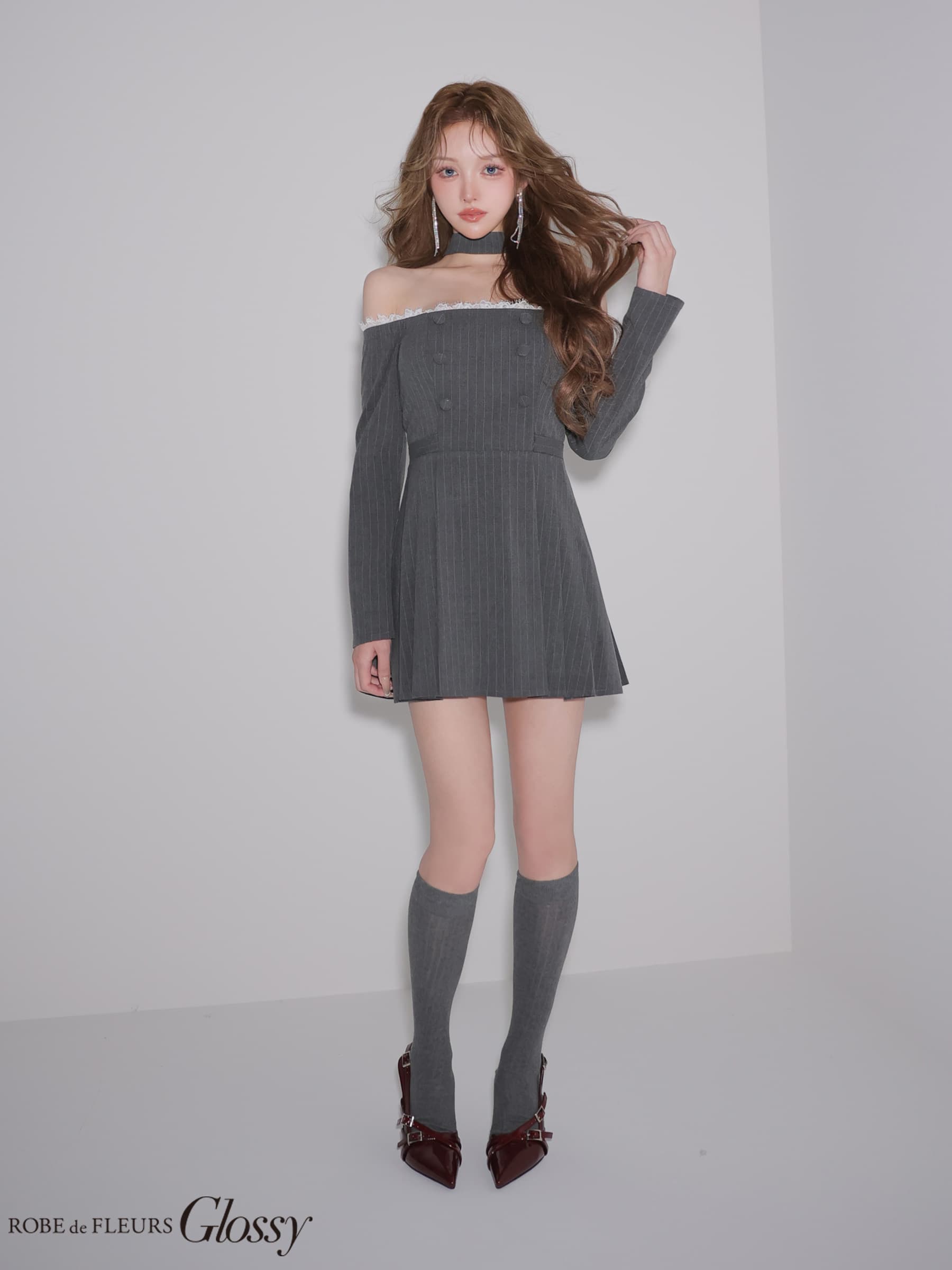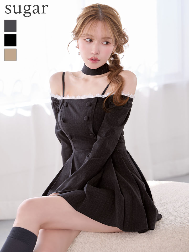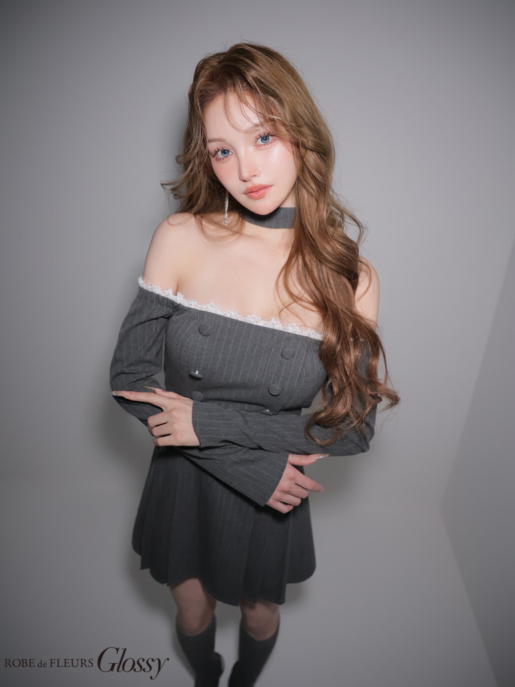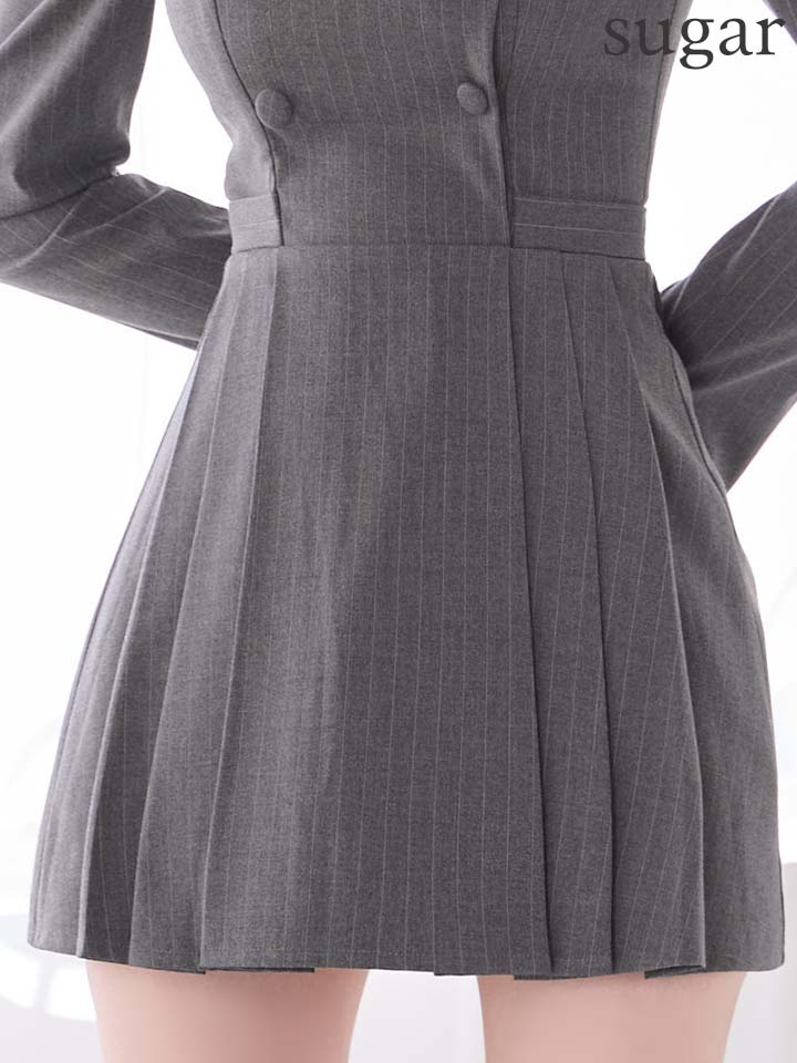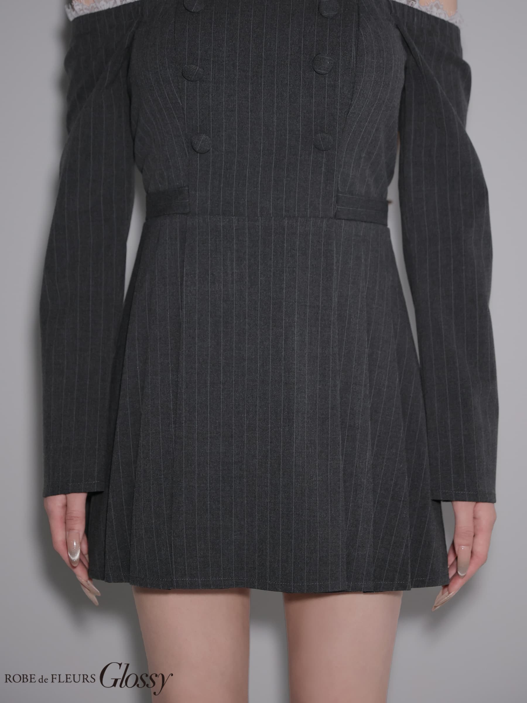 - > 【予約商品/2月上旬発送予定】XSサイズあり【Glossy/グロッシー】ダブルボタン/ ストライプ / フレア/ ミニドレス / キャバドレス[OF08]
