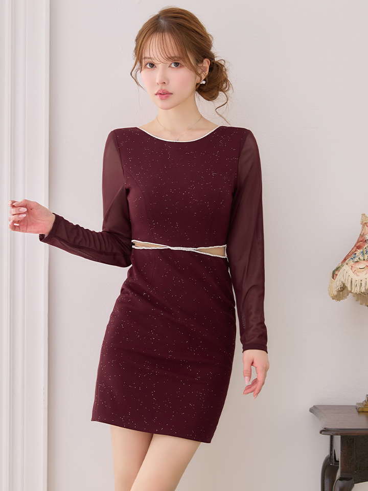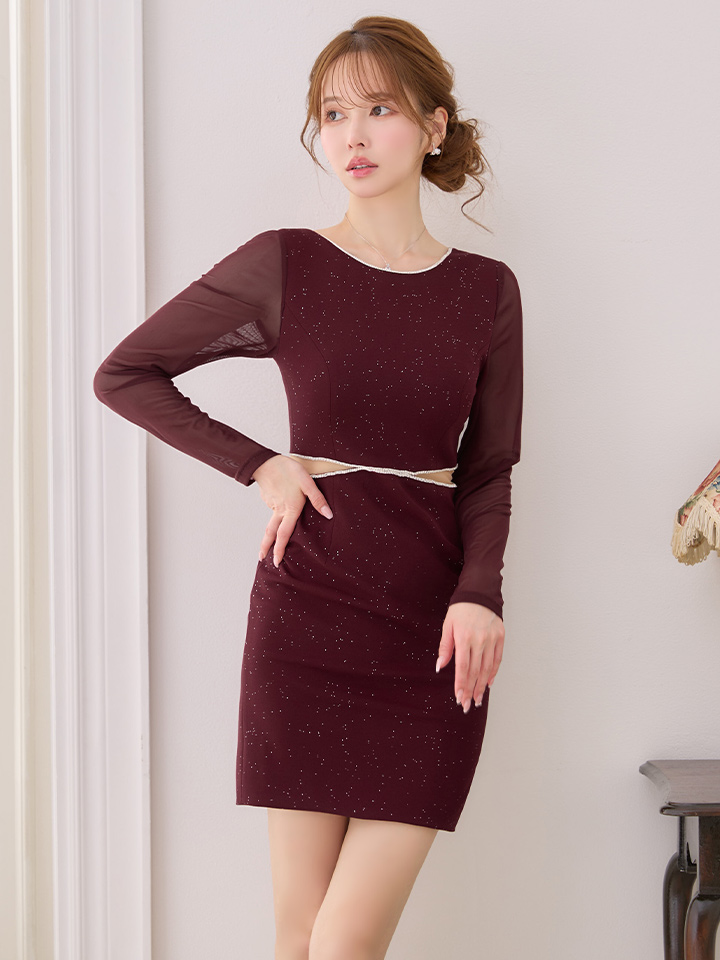 XS-Lサイズあり【ERUKEI エルケイ】ラメ/ カットアウト/ ラインストーン/ メッシュ/ 長袖/ ロングスリーブ/ タイト/ ミニドレス/ キャバドレス[OF2] [LKE25324-WR-S2602]