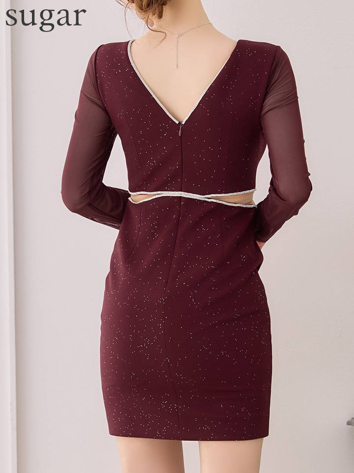 - > XS-Lサイズあり【ERUKEI エルケイ】ラメ/ カットアウト/ ラインストーン/ メッシュ/ 長袖/ ロングスリーブ/ タイト/ ミニドレス/ キャバドレス[OF2]