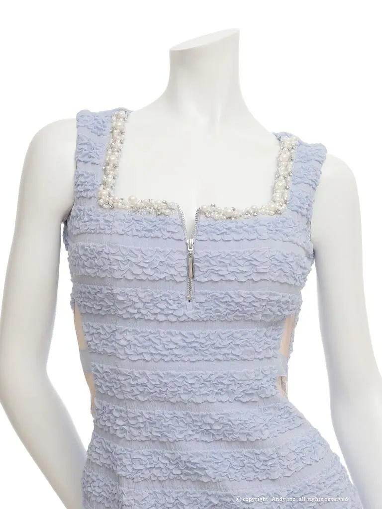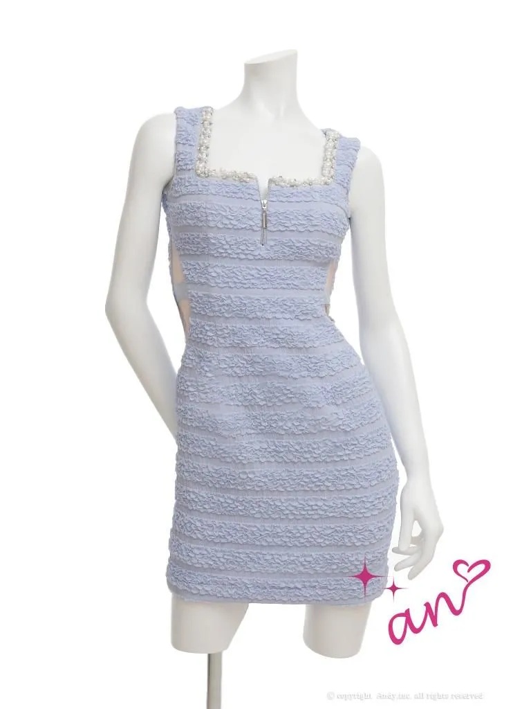 XSサイズあり【an/アン】立体レース/ パール/ ビジュー/ スクエアネック/ サイドシアー/ バストジップ/ ストレッチ/ タイト/ ミニドレス/ キャバドレス[OF05] [AOC4067-BL-2602]