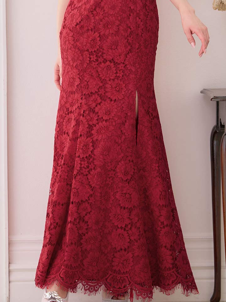 XS-Lサイズあり【ERUKEI エルケイ】マーメイド/ フラワーレース/ スリット/ ノースリーブ/ ワンピース/ ロングドレス/ キャバドレス long[OF2]