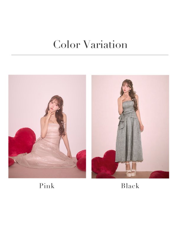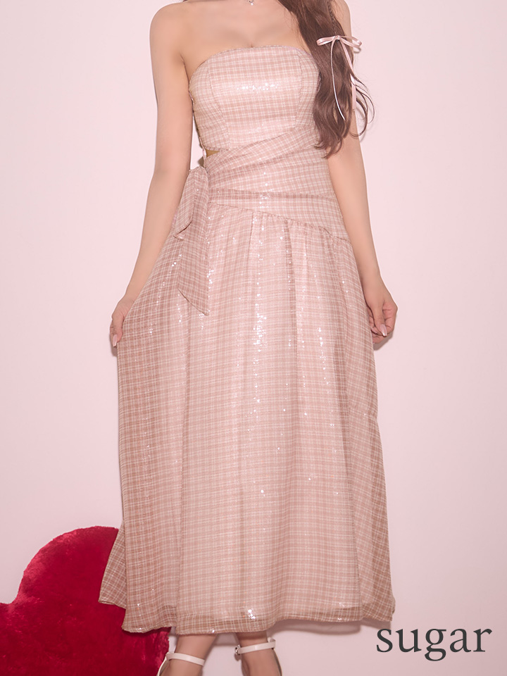 - > 【予約商品/2月下旬発送予定】XSサイズあり【an/アン】チェック/ 格子柄/ ウエストリボン/ ラメ/ ベアトップ/ フレア/ ワンピース/ ミディアムドレス/ キャバドレス[OF05]