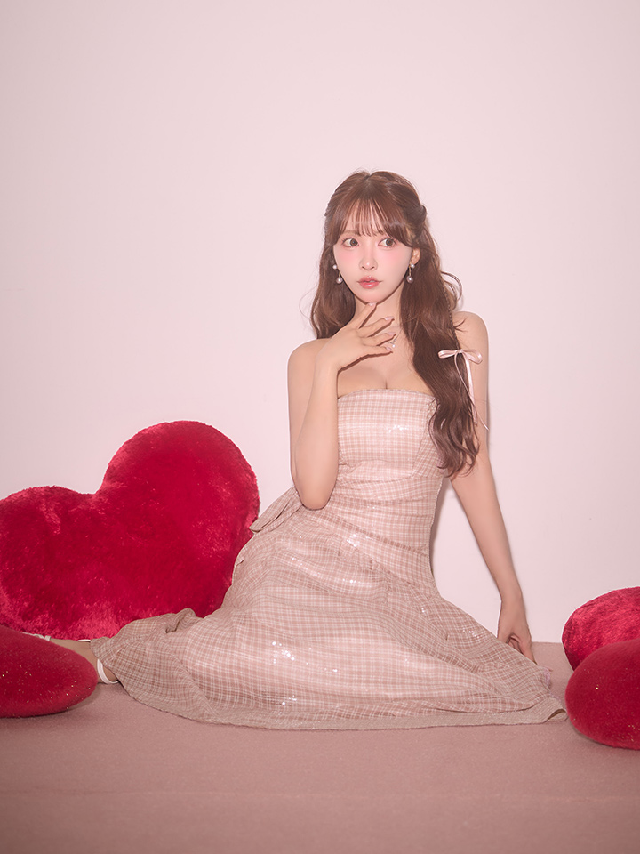 【予約商品/2月下旬発送予定】XSサイズあり【an/アン】チェック/ 格子柄/ ウエストリボン/ ラメ/ ベアトップ/ フレア/ ワンピース/ ミディアムドレス/ キャバドレス[OF05] [AOC4082-P-S260206]