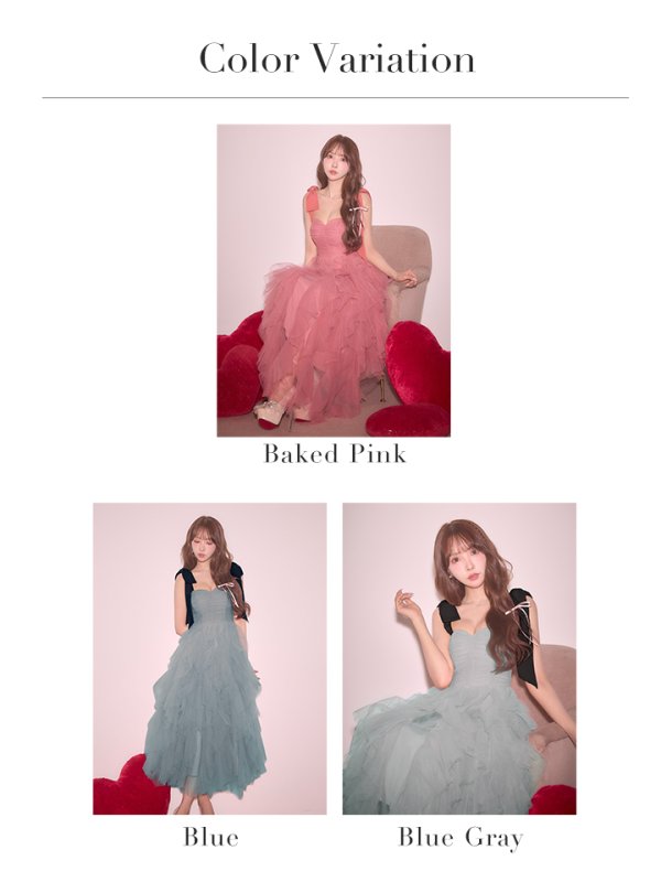 XS-Lサイズあり【ROBE de FLEURS/ローブドフルール】ボリュームチュール/ ショルダーリボン/ フレア/ ワンピース/ ミディアムドレス/ キャバドレス[OF08]【一部予約商品/2月下旬発送予定】 [FM3463-BakedP-S260206]