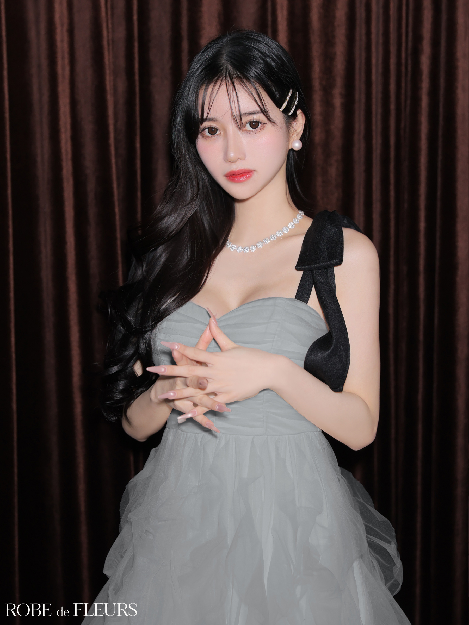 - > XS-Lサイズあり【ROBE de FLEURS/ローブドフルール】ボリュームチュール/ ショルダーリボン/ フレア/ ワンピース/ ミディアムドレス/ キャバドレス[OF08]【一部予約商品/2月下旬発送予定】