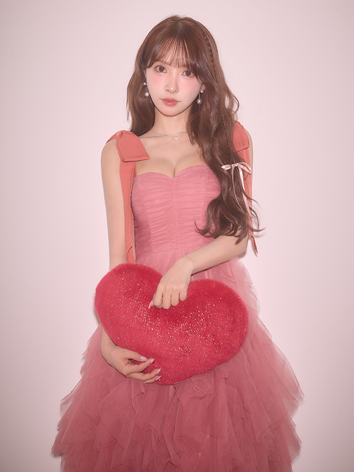 ボリュームたっぷりのチュールがロマンティックなミディアムワンピース♡
