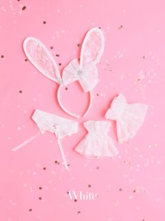 [セット内容] ブラ、ショーツ(Tバック)、ウエストフリルリボン、チョーカー[オプションアイテム] ウサ耳カチューシャ、チョーカー、カフス