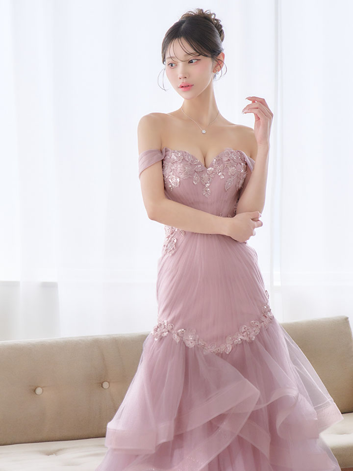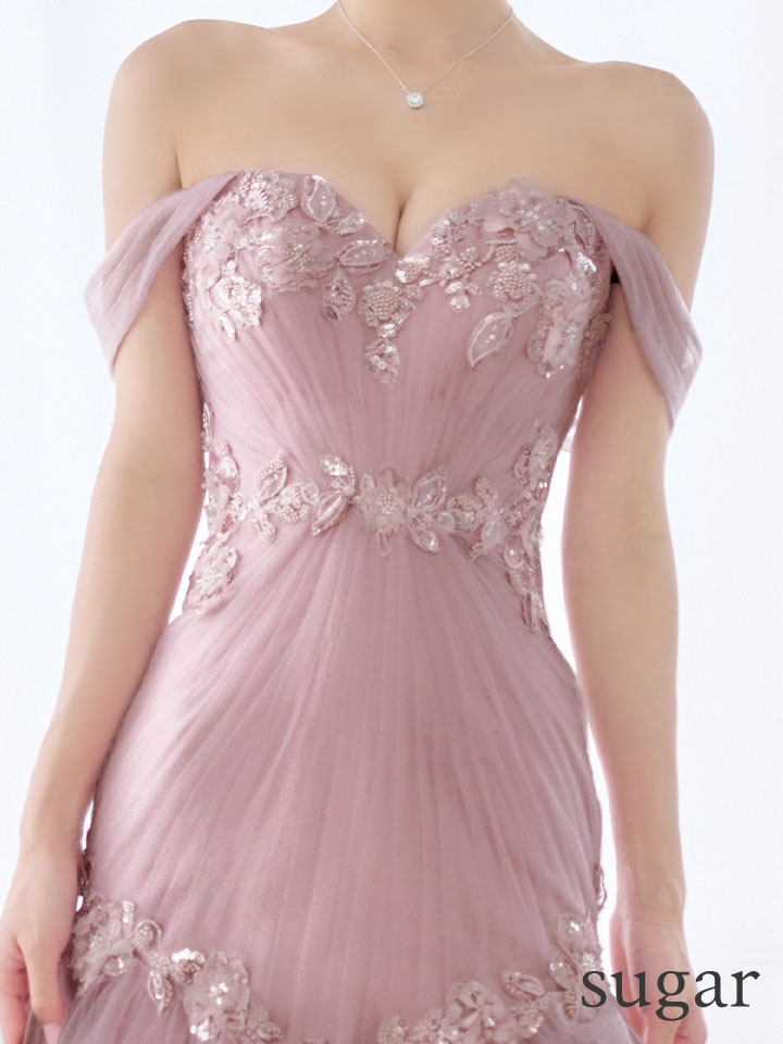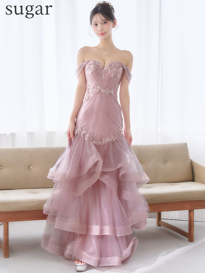 【JEAN MACLEAN/ジャンマクレーン】フラワー刺繍/ レース/ パール/ スパンコール/ チュール/ フロントギャザー/ オフショル/ ティアード/ マーメイド/ プリンセス/ ロングドレス/ キャバドレス long[OF2A]