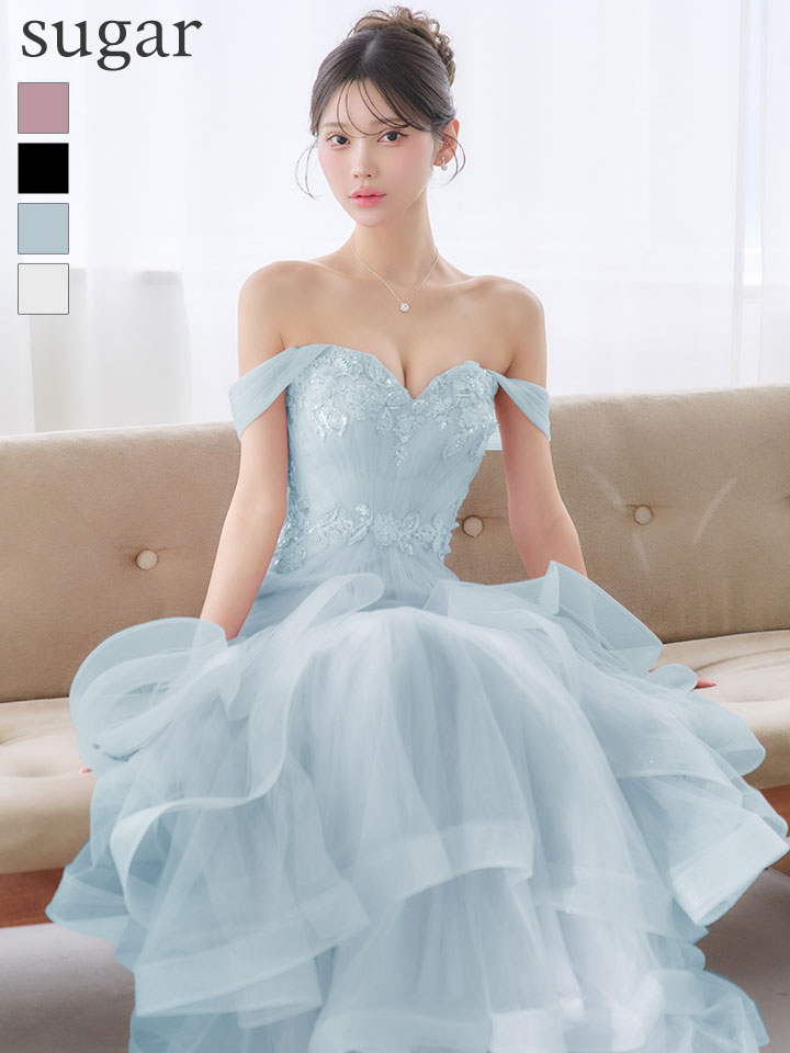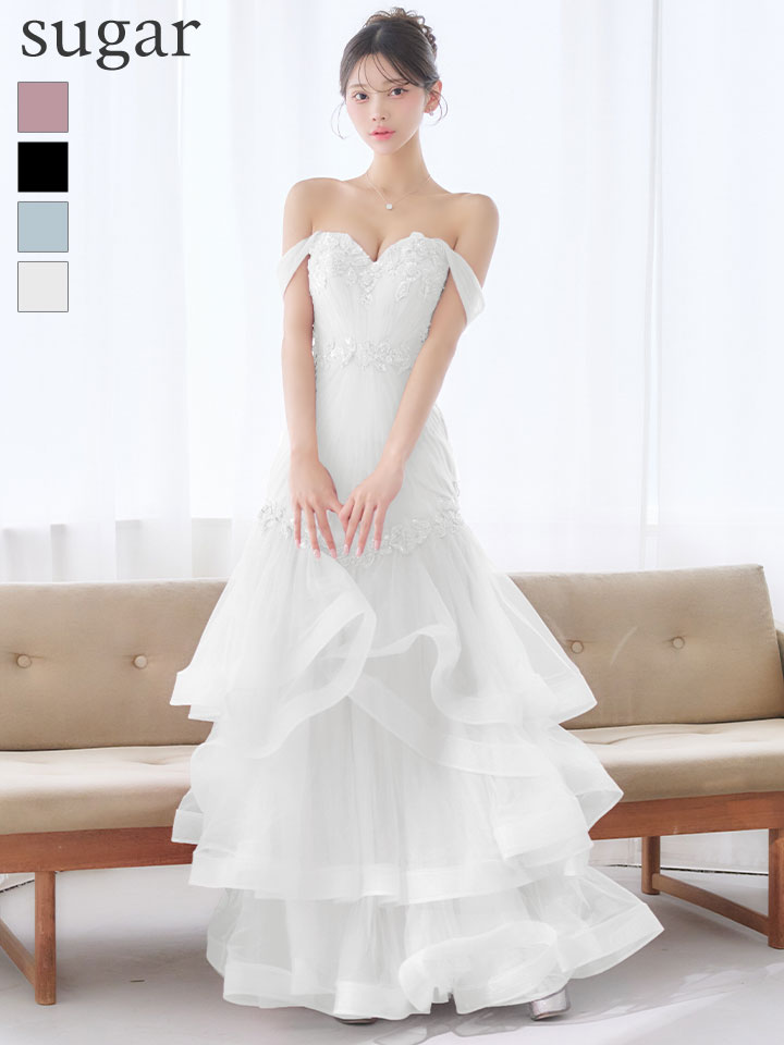 【JEAN MACLEAN/ジャンマクレーン】フラワー刺繍/ レース/ パール/ スパンコール/ チュール/ フロントギャザー/ オフショル/ ティアード/ マーメイド/ プリンセス/ ロングドレス/ キャバドレス long[OF2A] [51008-JM-W-S260207]