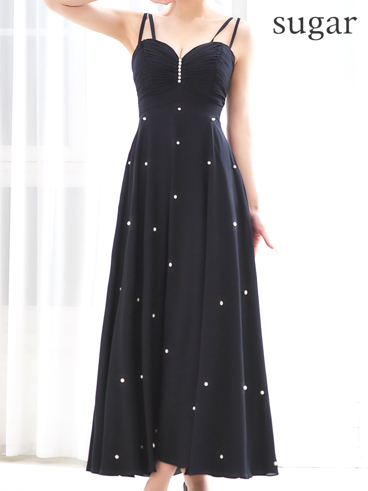 全体に散りばめられたパールが華やかなフレアミディアムドレス♡