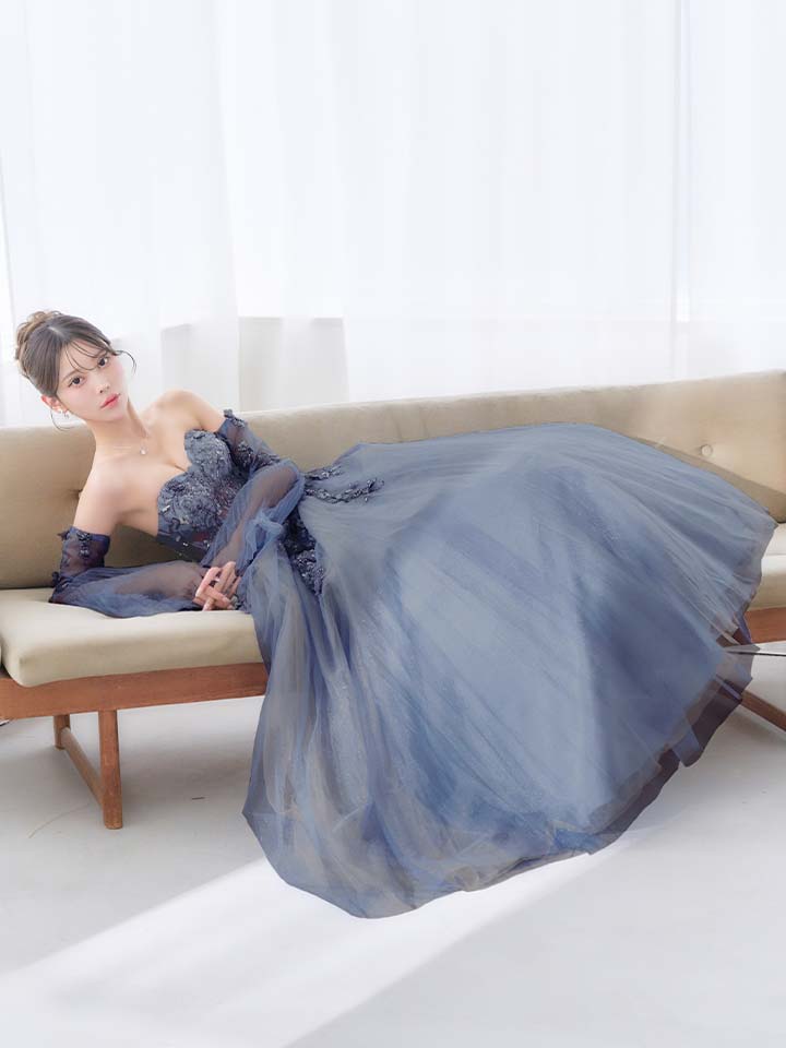 重なり合うシアーチュールがロマンティックなプリンセスロングドレス♡