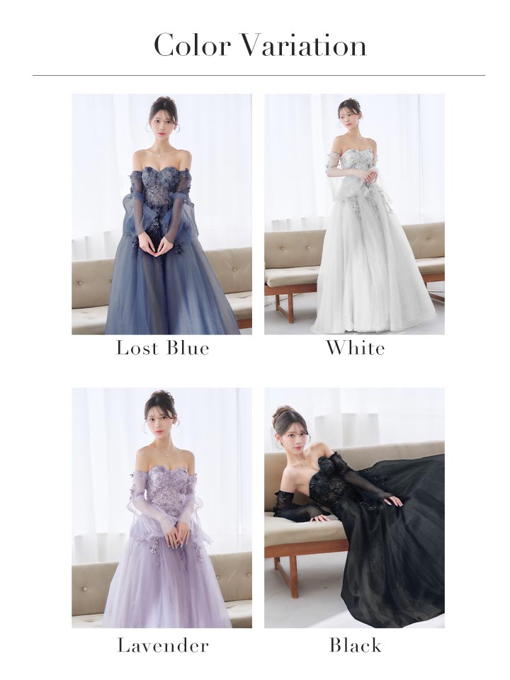 【JEAN MACLEAN/ジャンマクレーン】チョーカー/ 袖付き/ 2way/ オフショル/ ロングスリーブ/ 立体フラワー/ シアー/ チュール/ スパンコール/ ビーズ刺繍/ フレア/ プリンセス/ ロングドレス/ キャバドレス long[OF2A] [61037-JM-W-S2602]