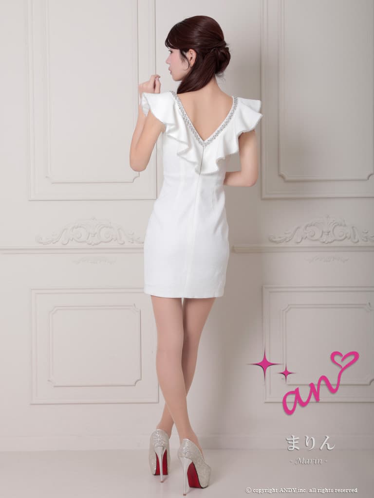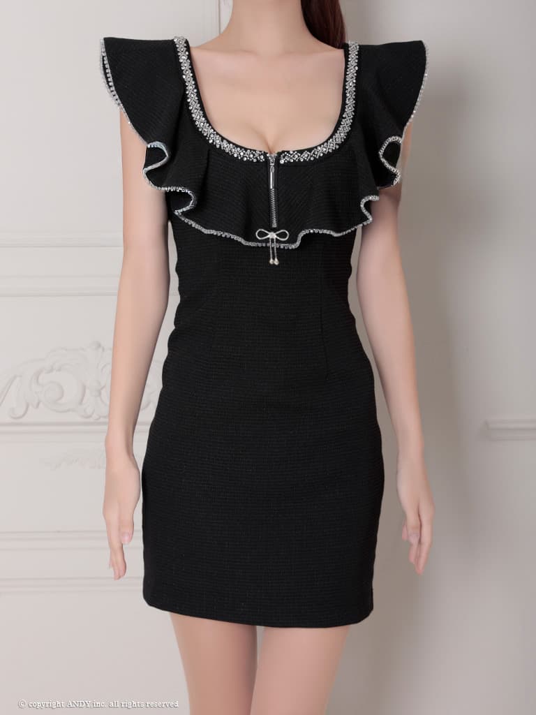 お顔周りをビジューとフリルで華やかに演出するタイトミニドレス♡