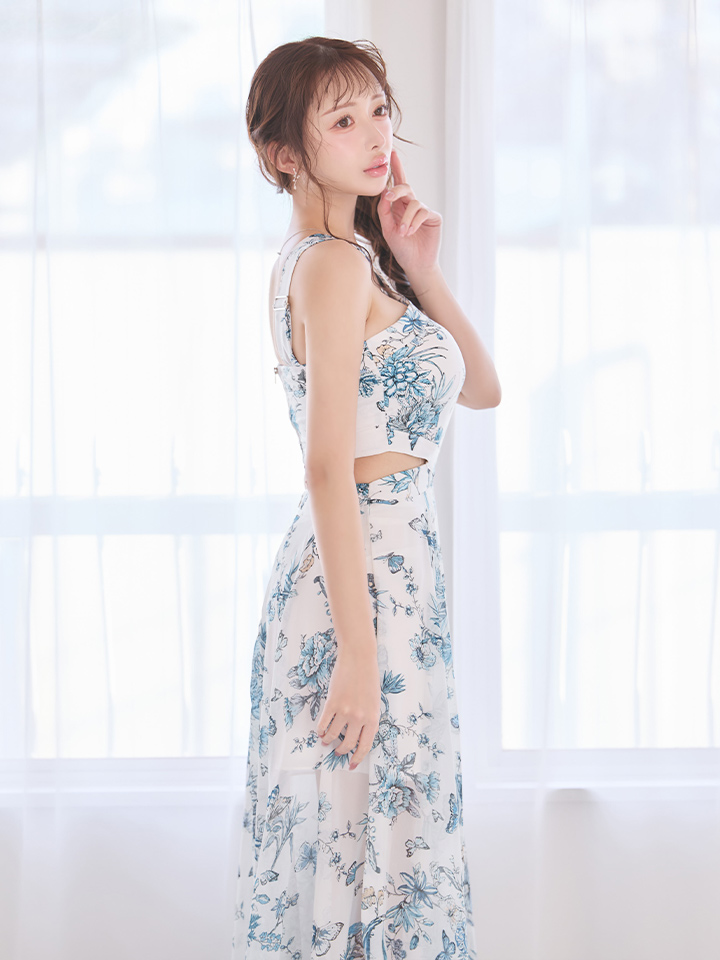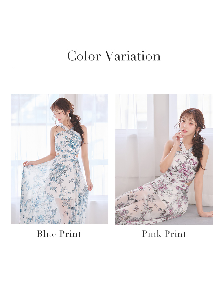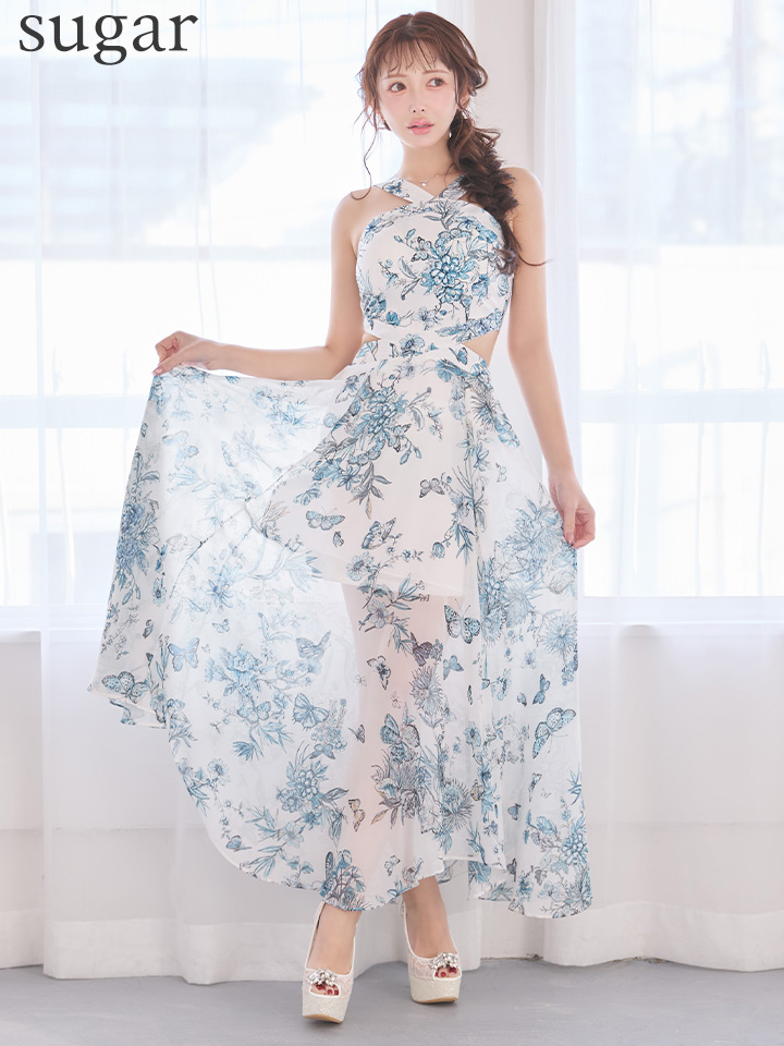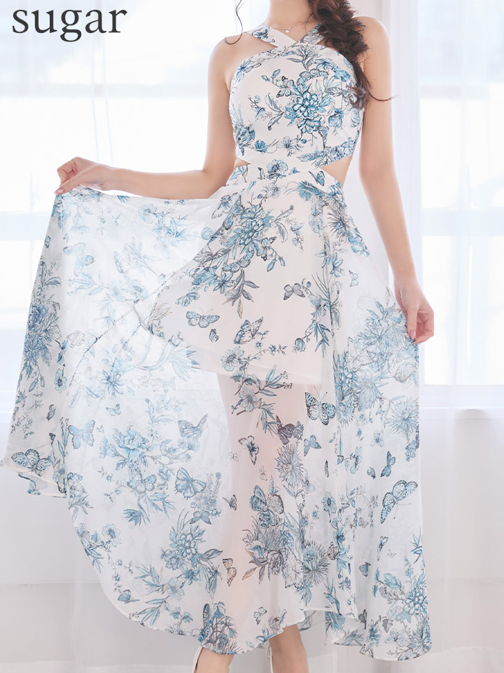 XSサイズあり【ANDY/アンディ】フラワープリント/ ウエストカットアウト/ ノースリーブ/ シフォン/ 総柄/ フレア/ ワンピース/ ロングドレス/ キャバドレス[OF05] [ON3055-Ppri-S260210]