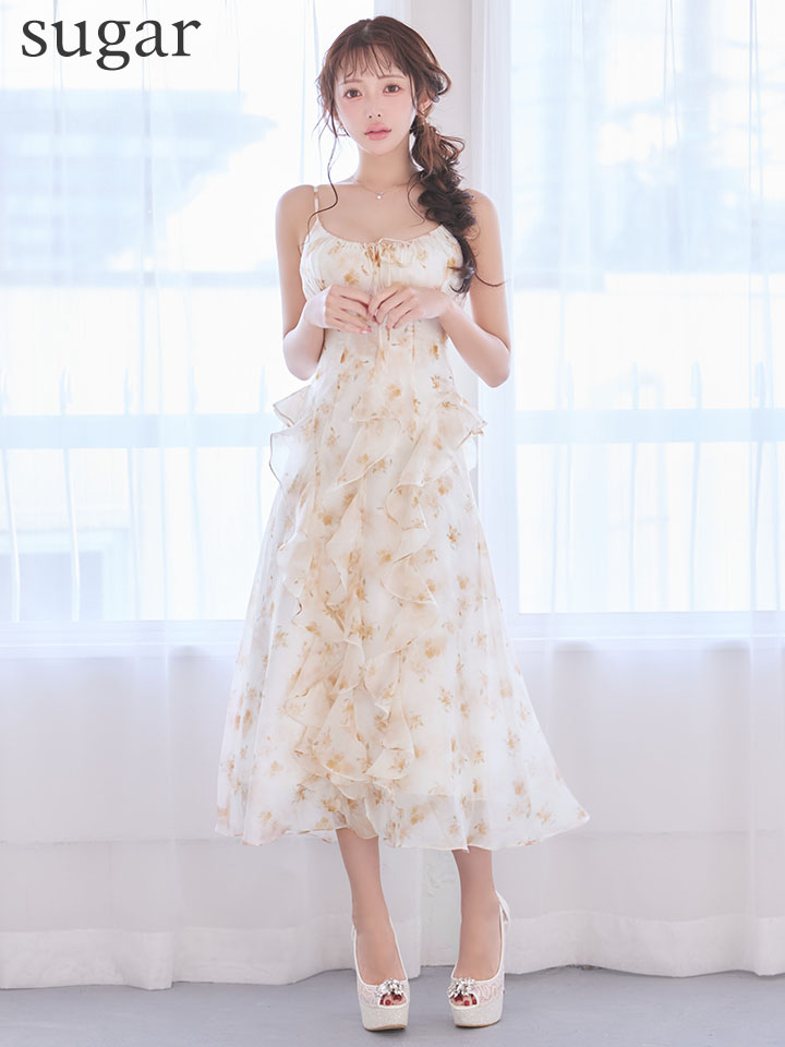 【予約商品/2月中旬-2月下旬発送予定】【ANGEL R/エンジェルアール】フラワーデザイン/ バストリボン/ フリル/ フレア/ シフォン/ ワンピース/ ロングドレス/ キャバドレス long[OF2] [AR26312-IV-S260210]