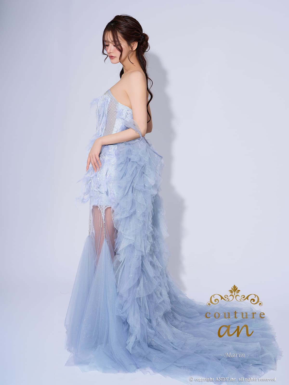 【couture an/クチュールアン】ベア/ ケープ付き/ フェザー/ ビジュー/ シアー/ スパンコール/ チュール/ フリル/ フレア/ マーメイド/ プリンセス/ ロングドレス/ キャバドレス long[OF05] [AOC-WD-057-BL-2602]