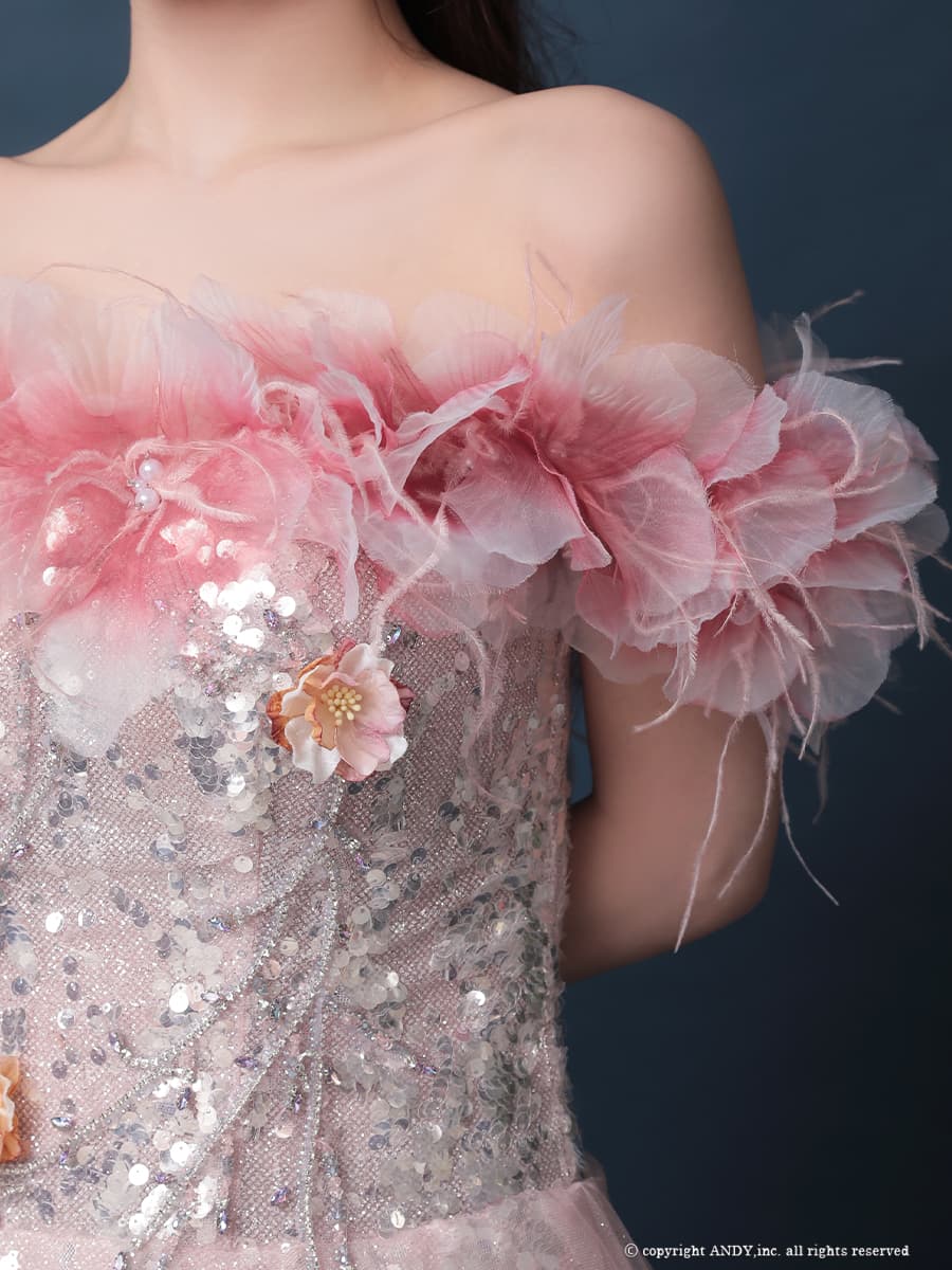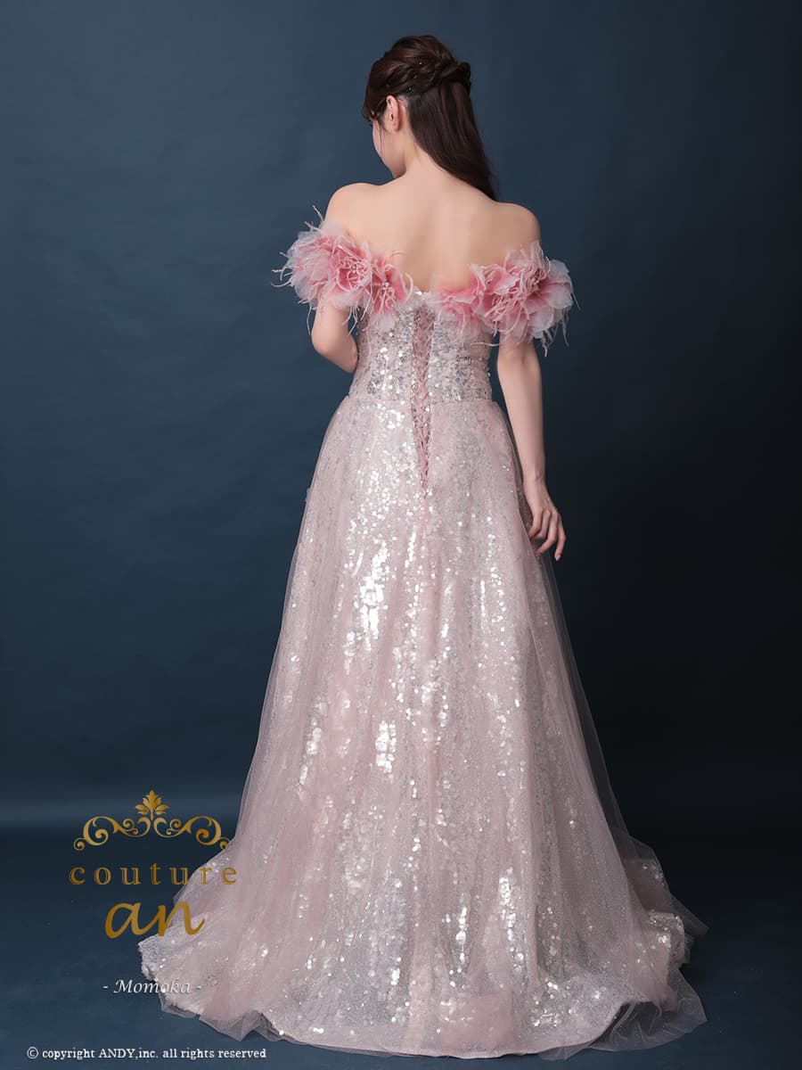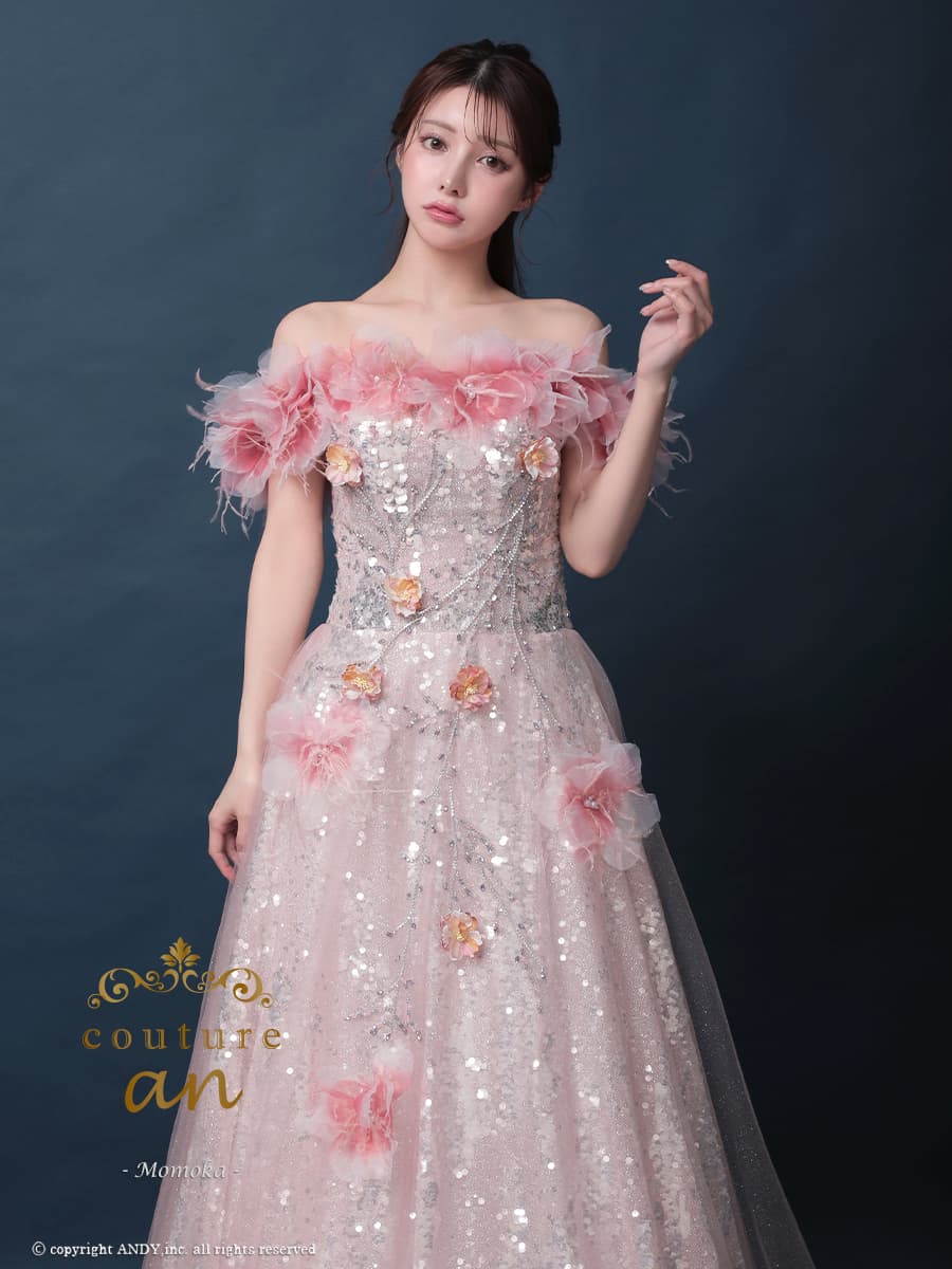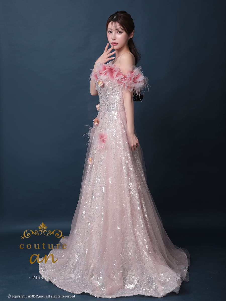 【couture an/クチュールアン】オフショル/ フェザー/ チュール/ グリッター/ 立体フラワー/ スパンコール/ フレア/ プリンセス/ ロングドレス/ キャバドレス long[OF05] [AOC-WD-049-P-2602]