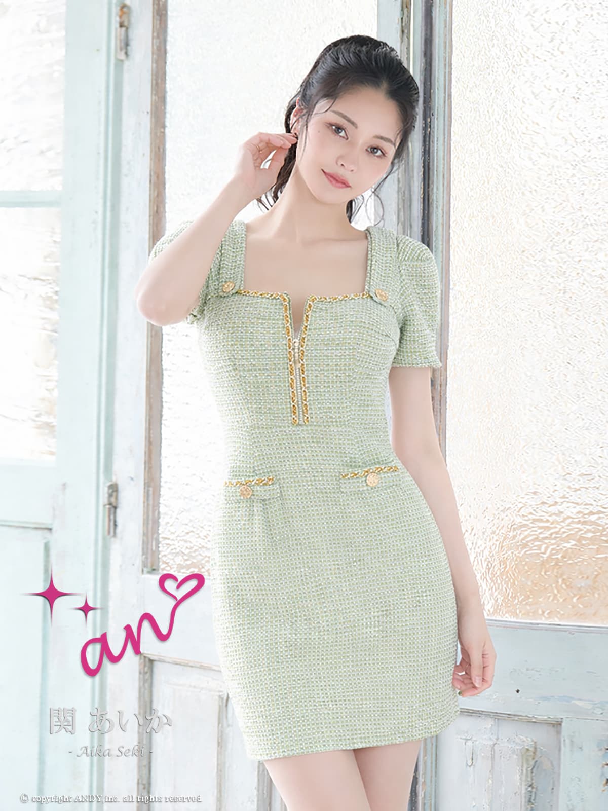 - > XSサイズあり【an/アン】ミックスツイード/ フロントジッパー/ 半袖/ パフスリーブ/ 袖あり/ タイト/ ミニドレス/ キャバドレス[OF05]