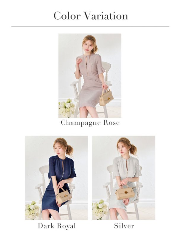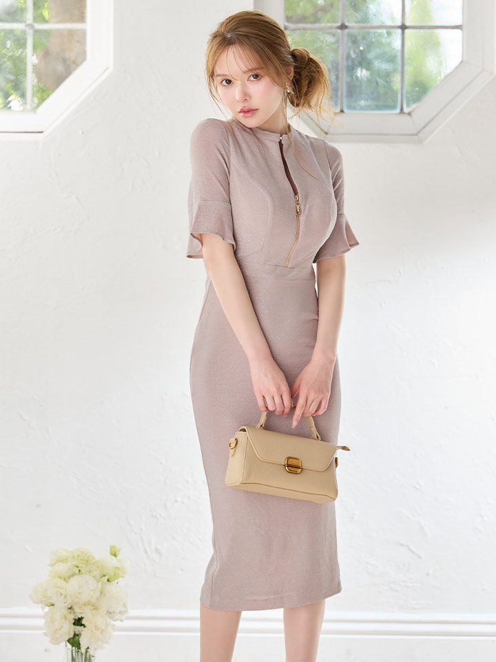- > 【予約商品/2月下旬発送予定】Lサイズあり【JEAN MACLEAN/ジャンマクレーン】 ラメニット/ 半袖/ バストジップ/ ひざ丈/ ストレッチ/ タイト/ ミディアムドレス/ キャバドレス[OF2A]