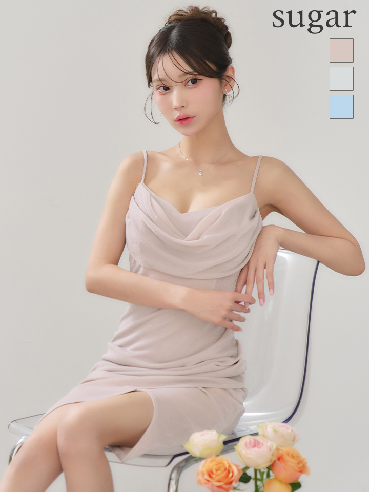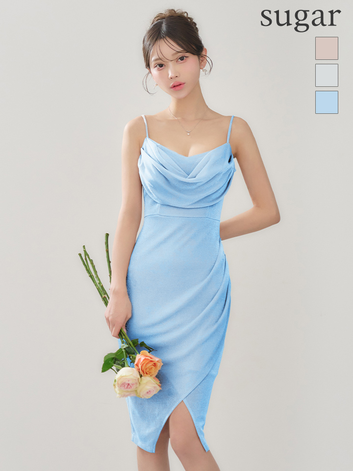 XSサイズあり【ANDY/アンディ】バストドレープ/ ワンカラー/ ラメニット/ キャミ/ タック/ タイト/ ミディアムドレス/ キャバドレス[OF05]