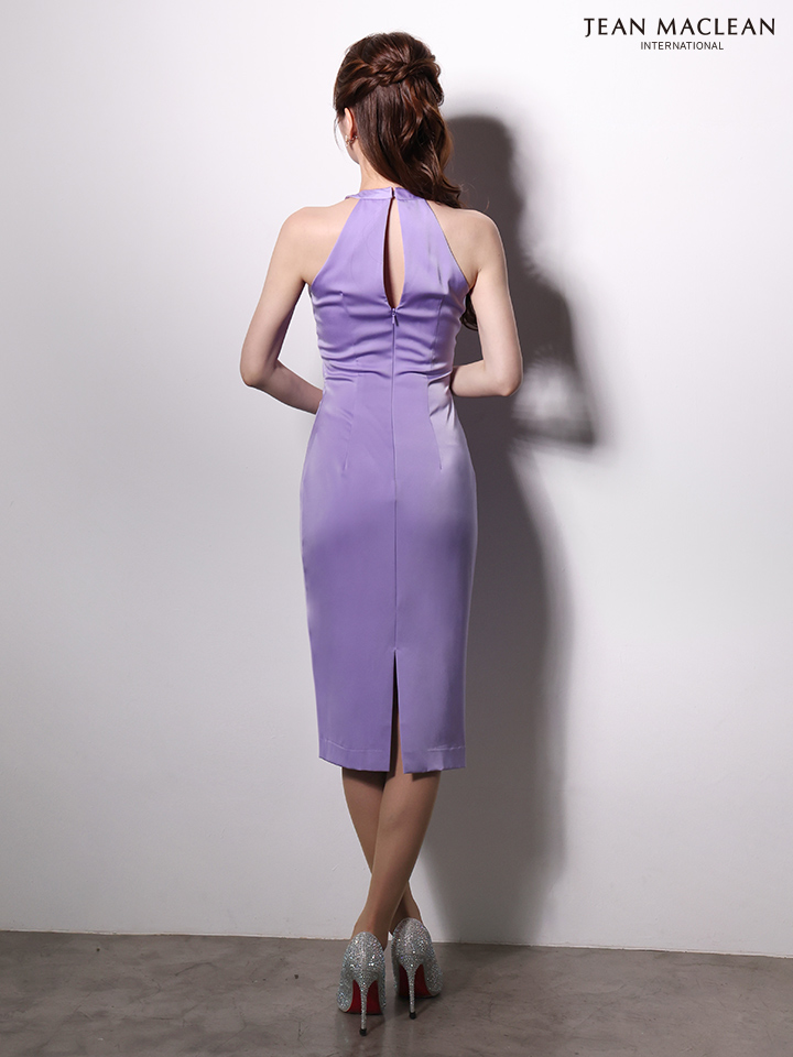 【予約商品/2月下旬発送予定】XSサイズあり【JEAN MACLEAN/ジャンマクレーン】 アメリカンスリーブ/ サイドタック/ サテン/ ワンカラー/ ひざ丈/ ストレッチ/ タイト/ ミディアムドレス/ キャバドレス[OF2A]
