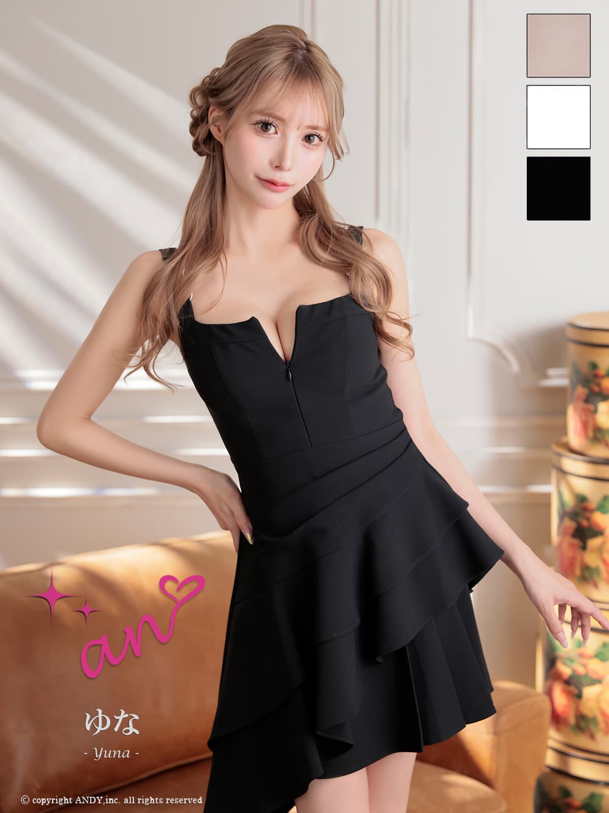 - > XSサイズあり【an/アン】ノースリーブ/ バストジップ/ アシンメトリー/ ショルダーバックル/ フリル/ フレア/ ミニドレス/ キャバドレス[OF05]
