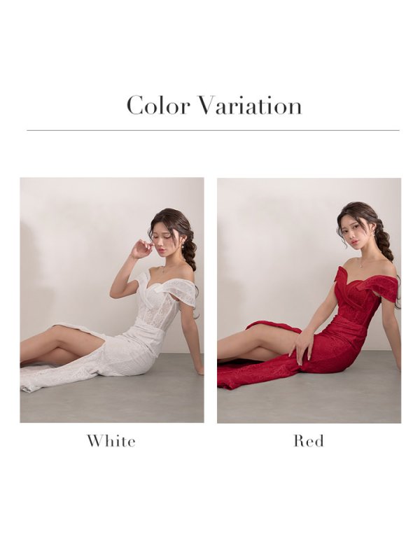 XS-Lサイズあり【SETTAN/セッタン】総レース/ シアー/ オフショルダー/ コルセット風/ スリット/ タイト/ マーメイド/ ロングドレス/ キャバドレス long[OF2]