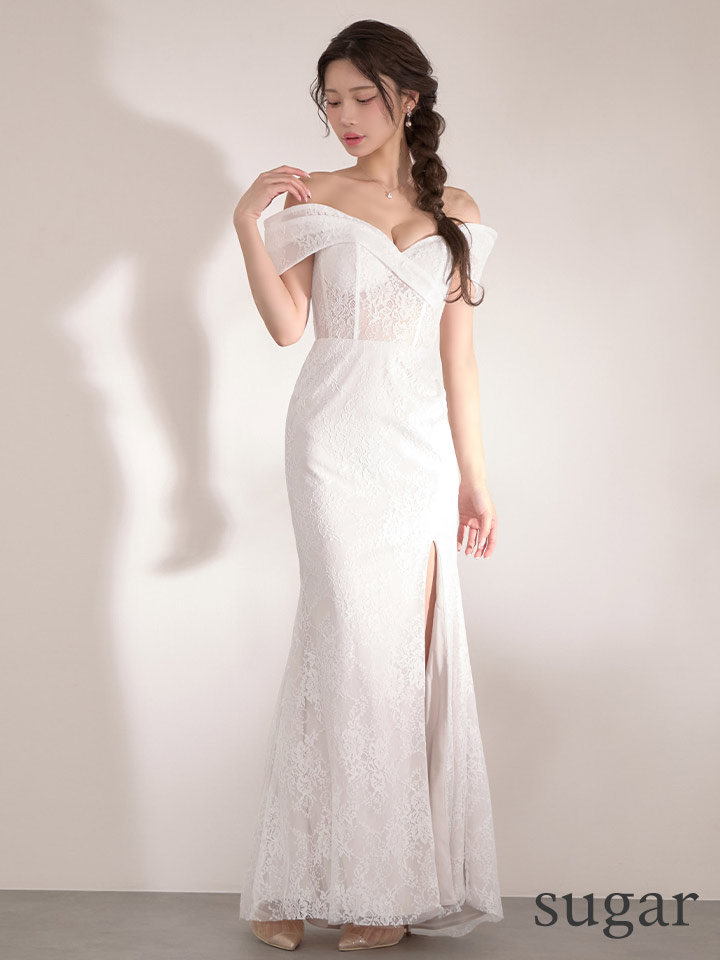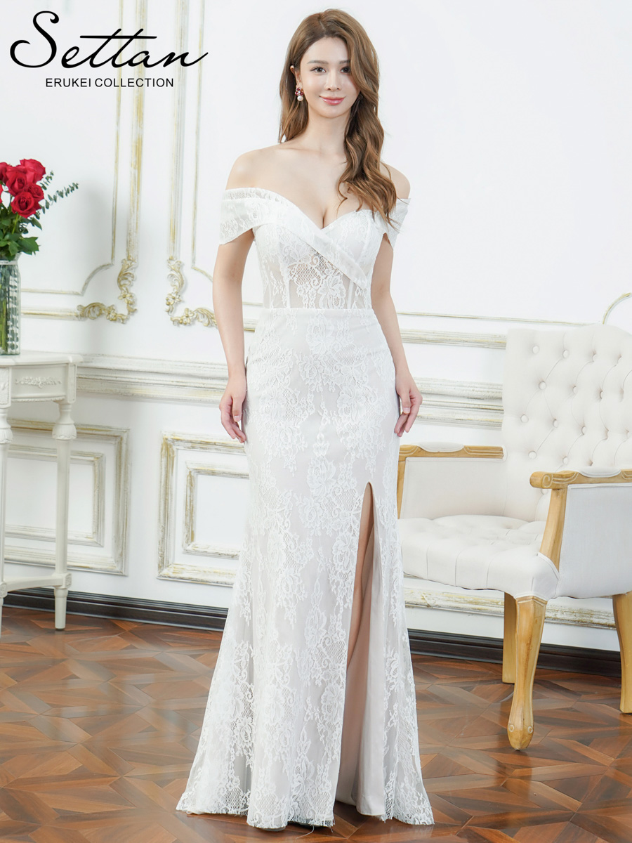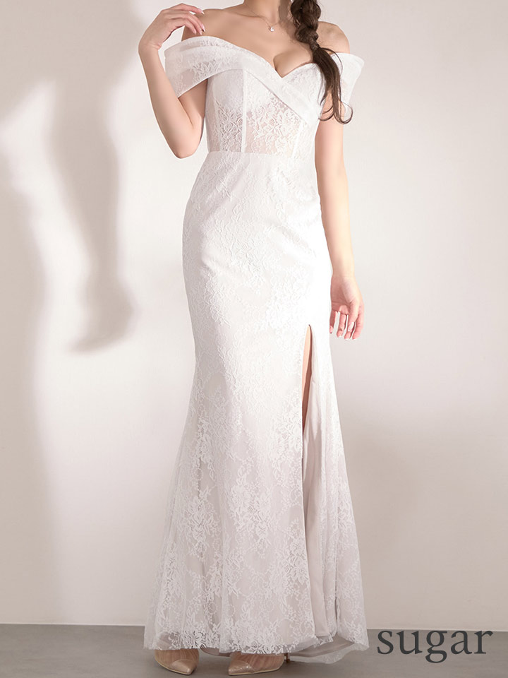 XS-Lサイズあり【SETTAN/セッタン】総レース/ シアー/ オフショルダー/ コルセット風/ スリット/ タイト/ マーメイド/ ロングドレス/ キャバドレス long[OF2] [LKS37219-W-S2602]