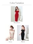 Lサイズあり【ISA FERRIS/ イサフェリス】スリット/ ストレッチ/ ショートスリーブ/ タイト/ ひざ丈/ ミディアムドレス/ キャバドレス【OF05】 [F9849H-DKR-S2602]