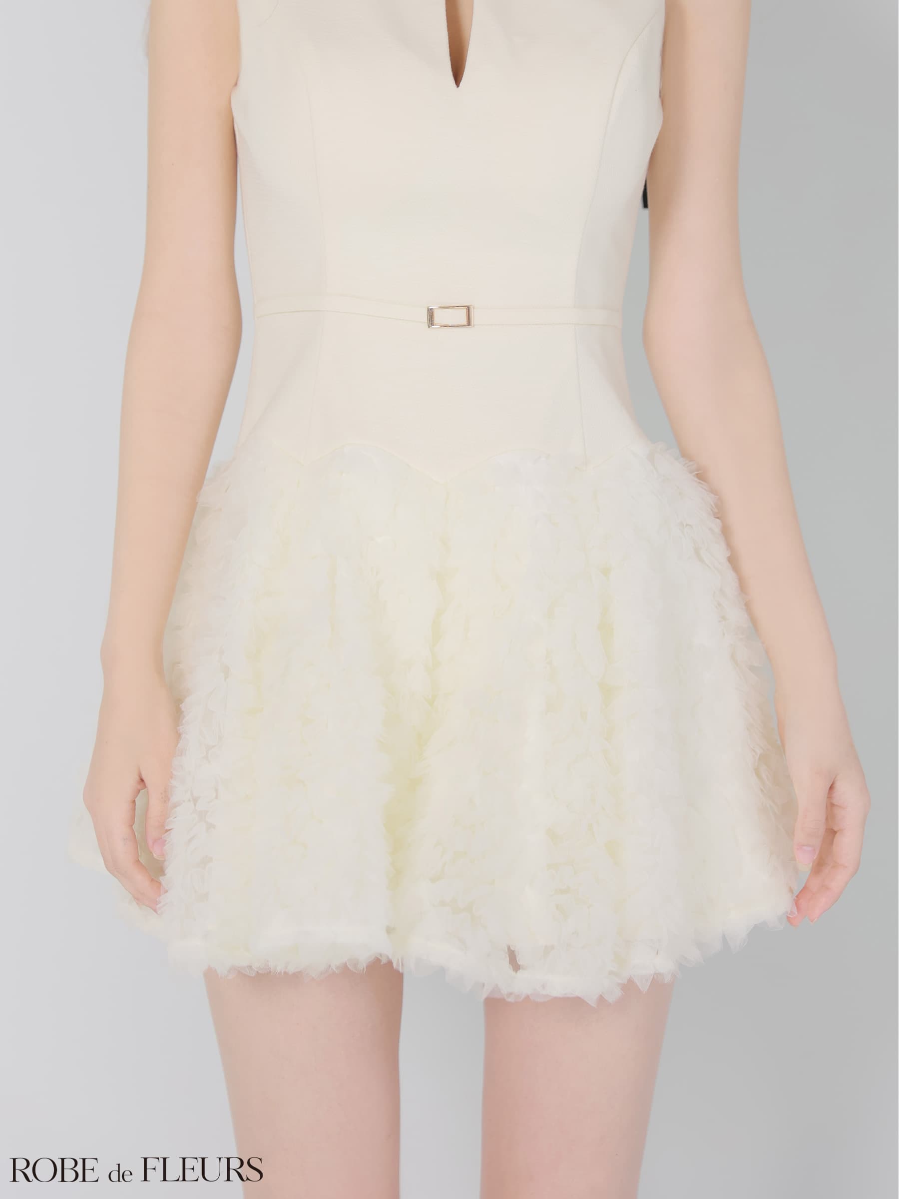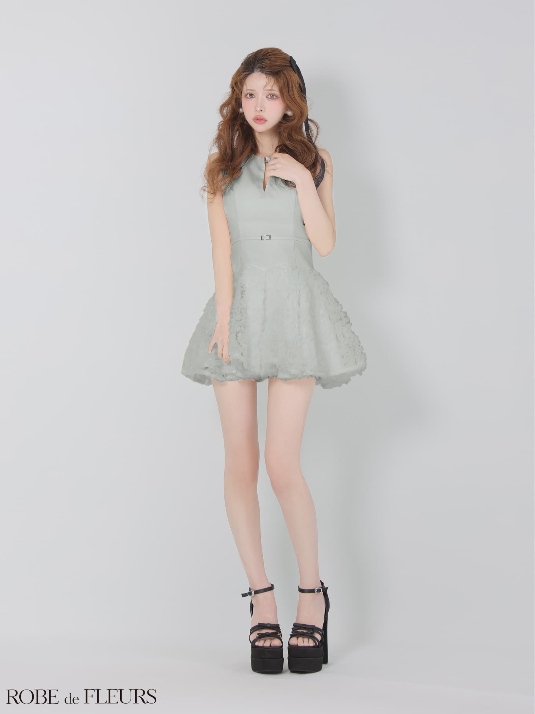 ボリュームのある立体チュールレースが存在感のあるミニワンピ。