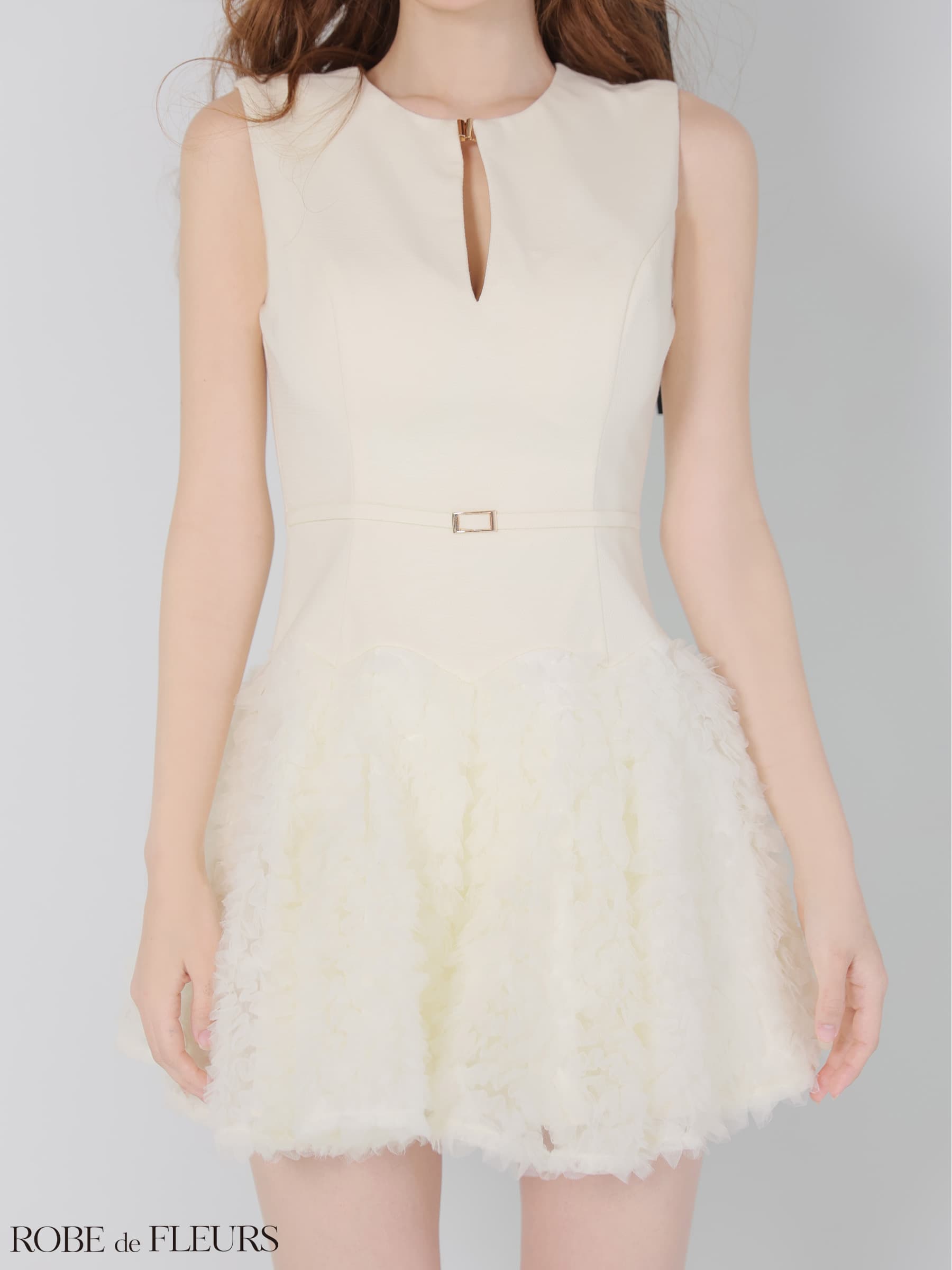 XSサイズあり【ROBE de FLEURS/ローブドフルール】ボリュームチュール/ ドッキングニット/ ベルト/ ノースリーブ/ フレア/ Aライン/ ミニドレス/ キャバドレス[OF08]