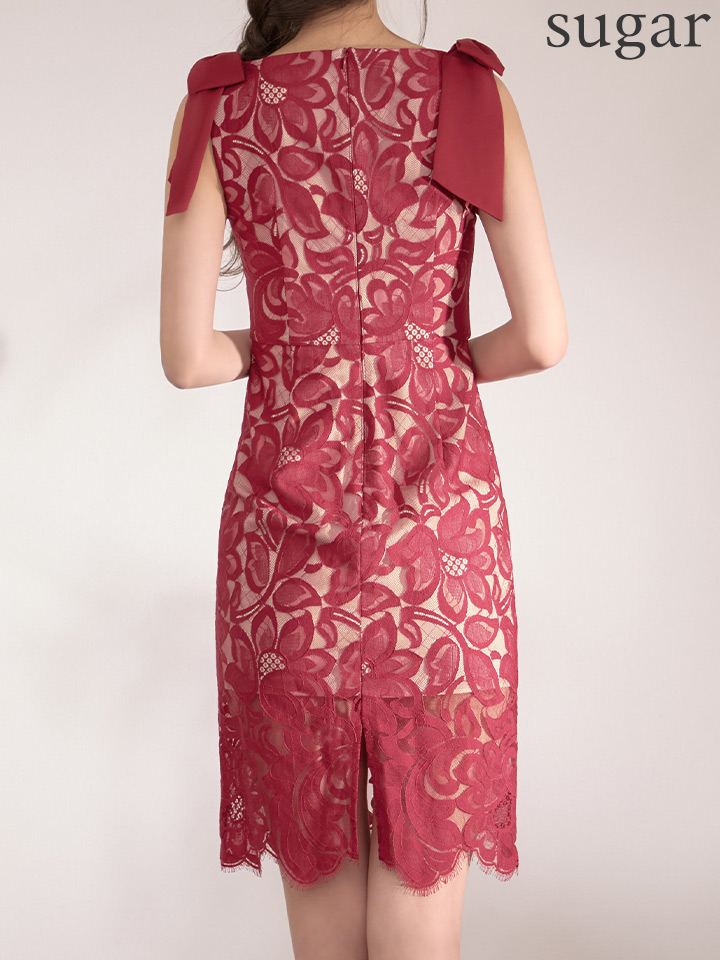 XS-Lサイズあり 【GINZA COUTURE/銀座クチュール】総レース/ ショルダーリボン/ ノースリーブ/ タイト/ 膝丈/ ミディアムドレス/ キャバドレス[OF2] [LKC25302-R-S2602]