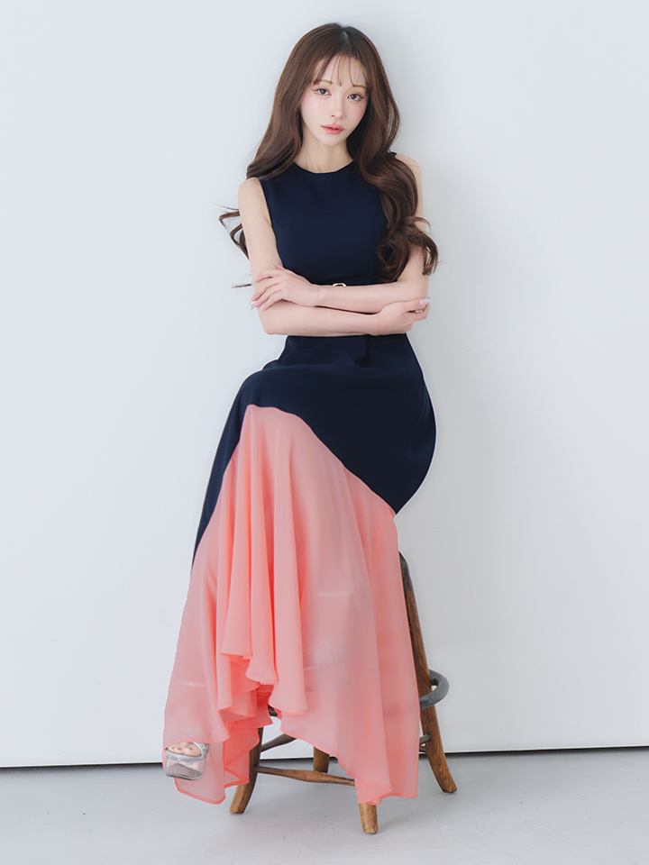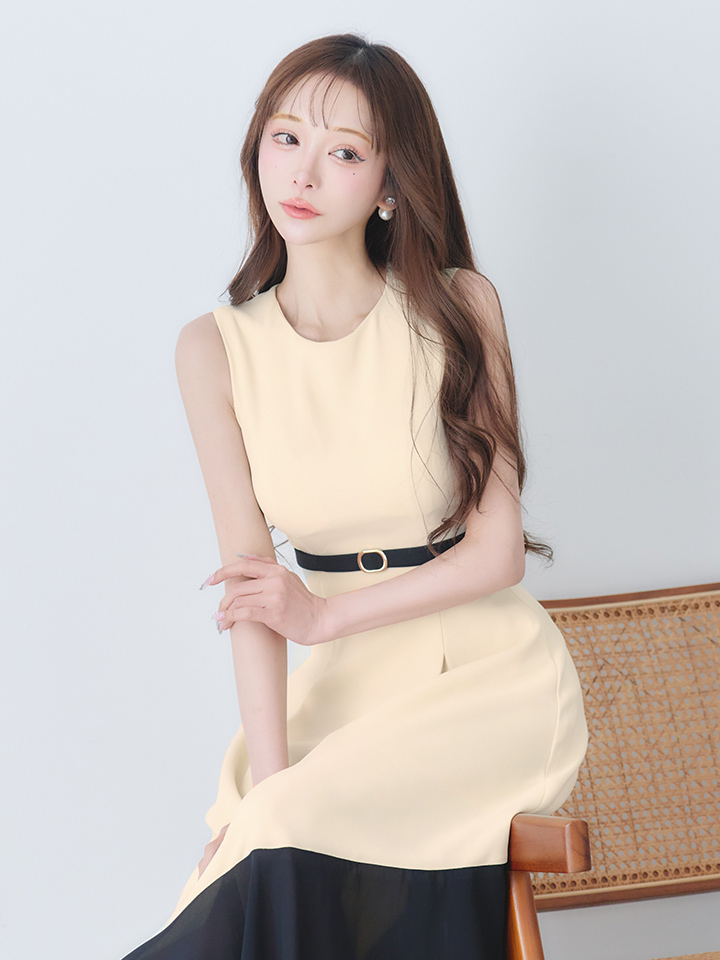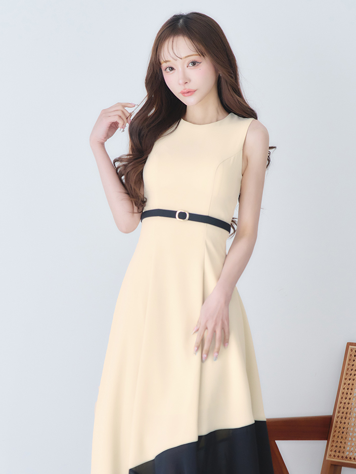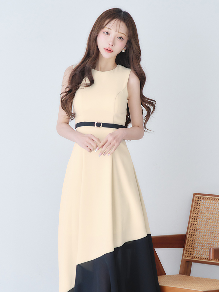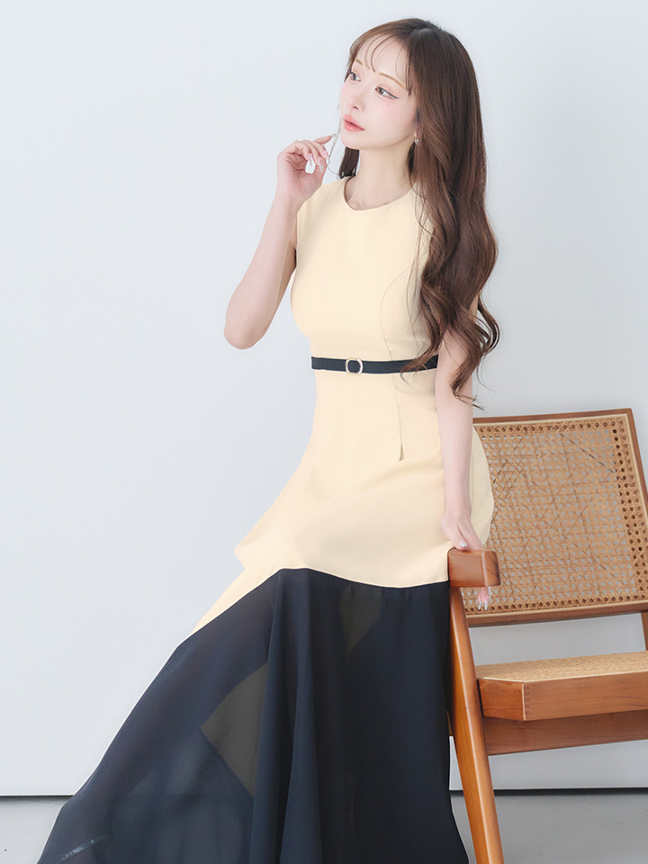【VELIQUE/ヴェリーク】バイカラー/ ベルト/ ノースリーブ/ フレア/ Aライン/ ロングドレス/ キャバドレスlong【HC02】