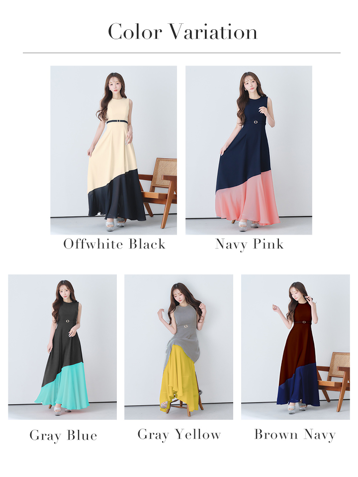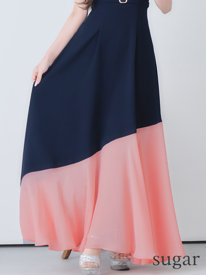 バイカラーデザインが目を惹く大人上品なフレアロングドレス