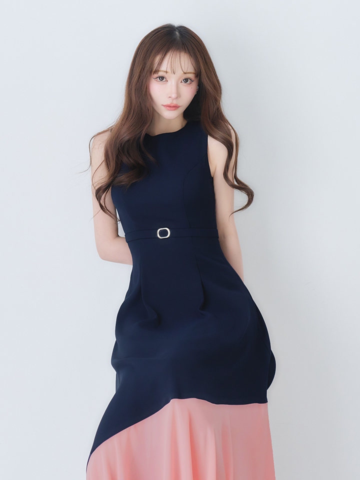 【VELIQUE/ヴェリーク】バイカラー/ ベルト/ ノースリーブ/ フレア/ Aライン/ ロングドレス/ キャバドレスlong【HC02】 [BYRS-233-BRxNV-S260217]