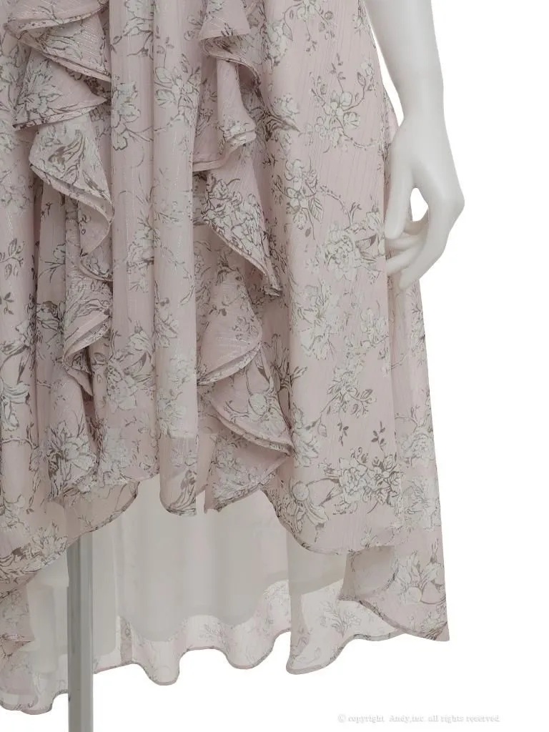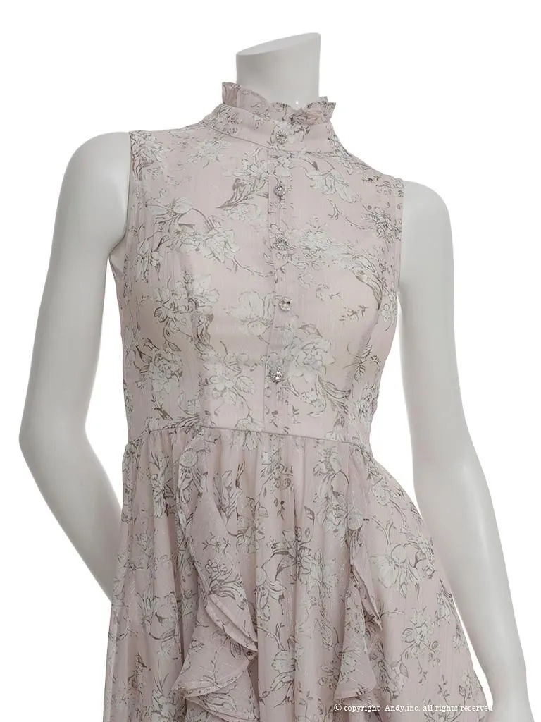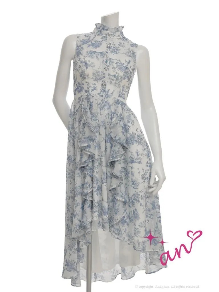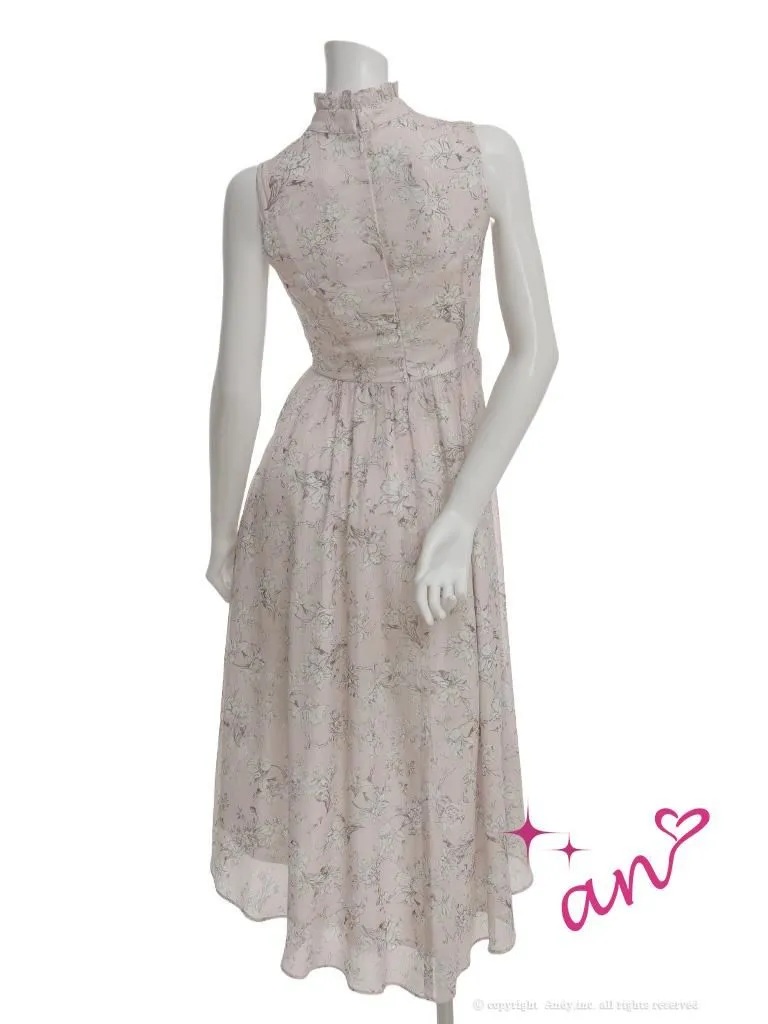 【予約商品/2月下旬発送予定】XSサイズあり【an /アン】フラワープリント/ ハイネック/ フリル/ テールカット/ ワンピース/ フレア/ ミディアムドレス/ キャバドレス[OF05]