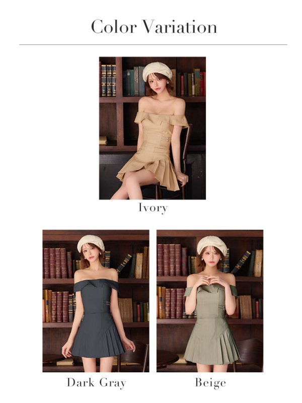 XSサイズあり【ANGEL R/エンジェルアール】オフショル/ レイヤードデザイン/ プリーツ/ セパレート/ Aライン/ フレア/ マイクロミニドレス/ キャバドレス[OF2] [AR26207-IV-S260218]