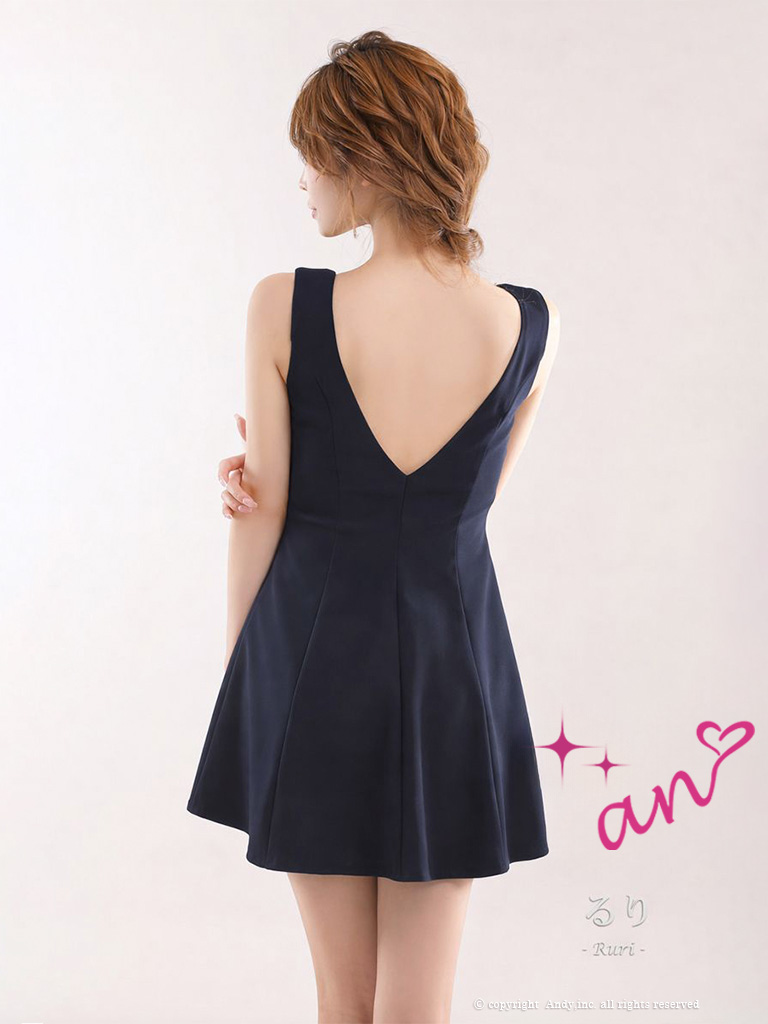 背中は大胆なVカットで、360度美しさを引き立てる一着です。