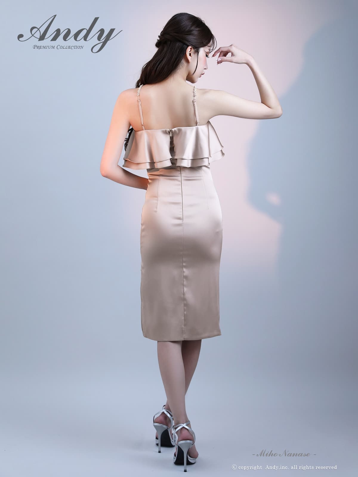 XSサイズあり【ANDY/アンディ】ビジューストラップ付き/ ワンカラー/ 2WAY/ フリル/ ベア/ タイト/ スリット/ ミディアムドレス/ キャバドレス[OF05] [ON3061-CHPBE-2602]