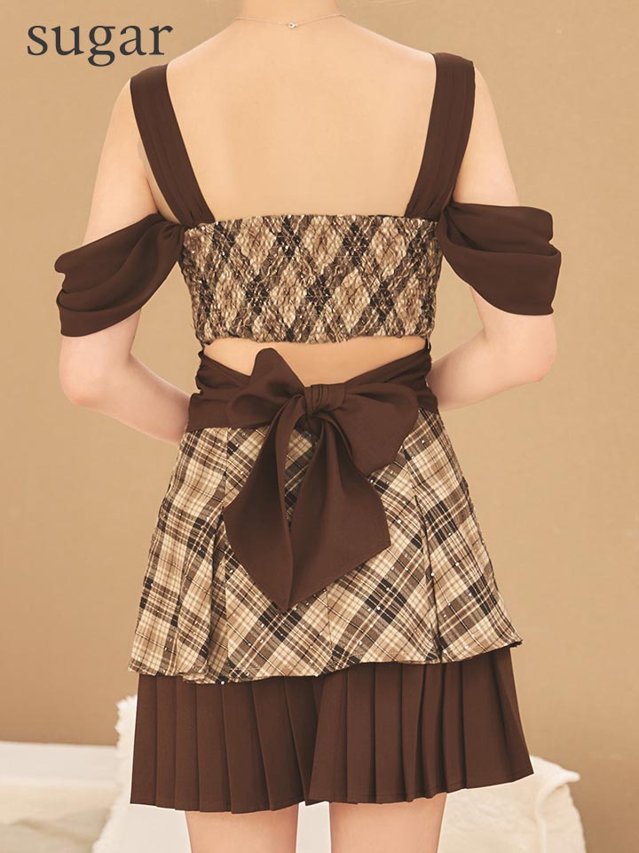 XSサイズあり【an/アン】チェック柄/ 4way/ 袖取り外し可能/ フロントジップ/ オフショルダー/ キャミ/ ベア/ リボン/ ハイウエスト切替/ プリーツ/ フレア/ ミニドレス/ キャバドレス[OF05] [AOC4038-B-S260219]