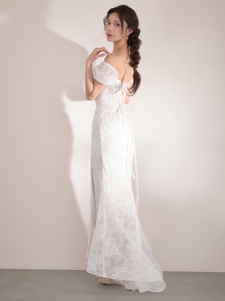 XS-Lサイズあり【SETTAN/セッタン】総レース/ シアー/ オフショルダー/ コルセット風/ スピンドル/ ギャザー/ スリット/ タイト/ マーメイド/ ロングドレス/ キャバドレス long[OF2]