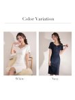 XS-Lサイズあり 【GINZA COUTURE/銀座クチュール】ビジューボタン/ ワンカラー/ 半袖/ タイト/ 膝丈/ ミディアムドレス/ キャバドレス[OF2] [LKC25209-NV-S2602]