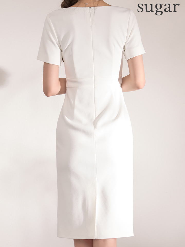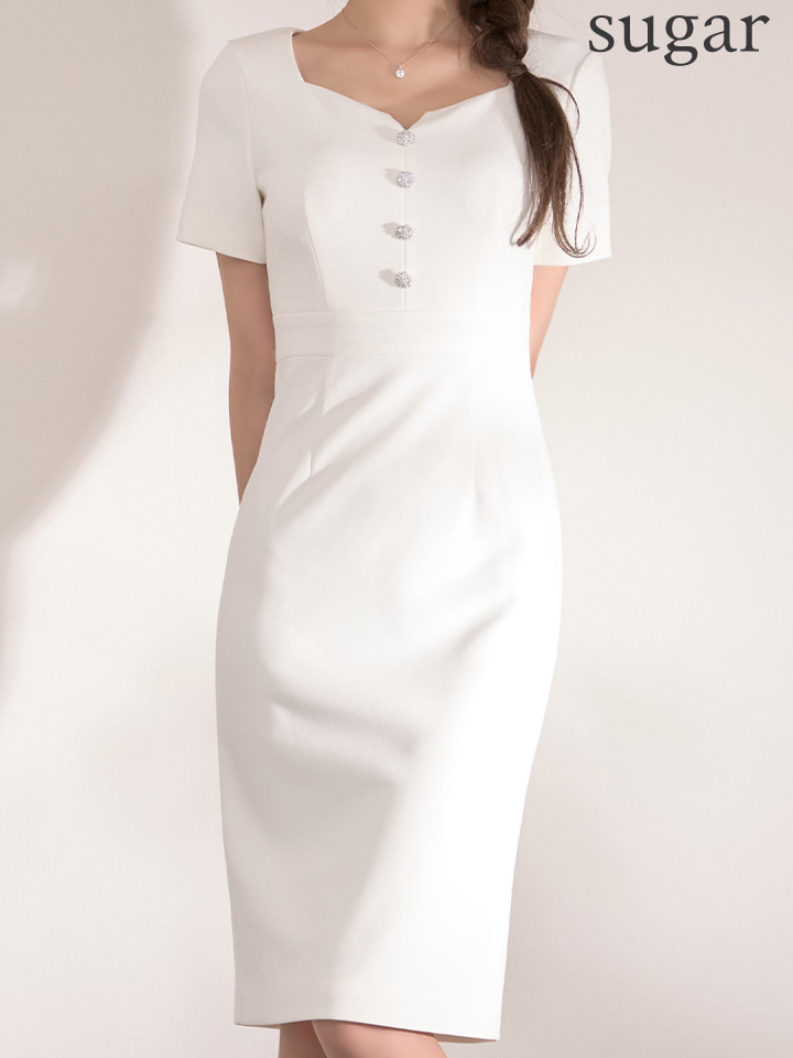 - > XS-Lサイズあり 【GINZA COUTURE/銀座クチュール】ビジューボタン/ ワンカラー/ 半袖/ タイト/ 膝丈/ ミディアムドレス/ キャバドレス[OF2]