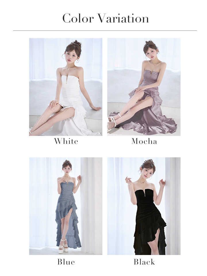 XSサイズあり【an /アン】 バストジップ/ ベア/ ラインストーン/ アシンメトリー/ サイドギャザー/ テールカット/ ティアードフリル/ ロングドレス/ キャバドレス[OF05 [AOC4046-B-S260220]